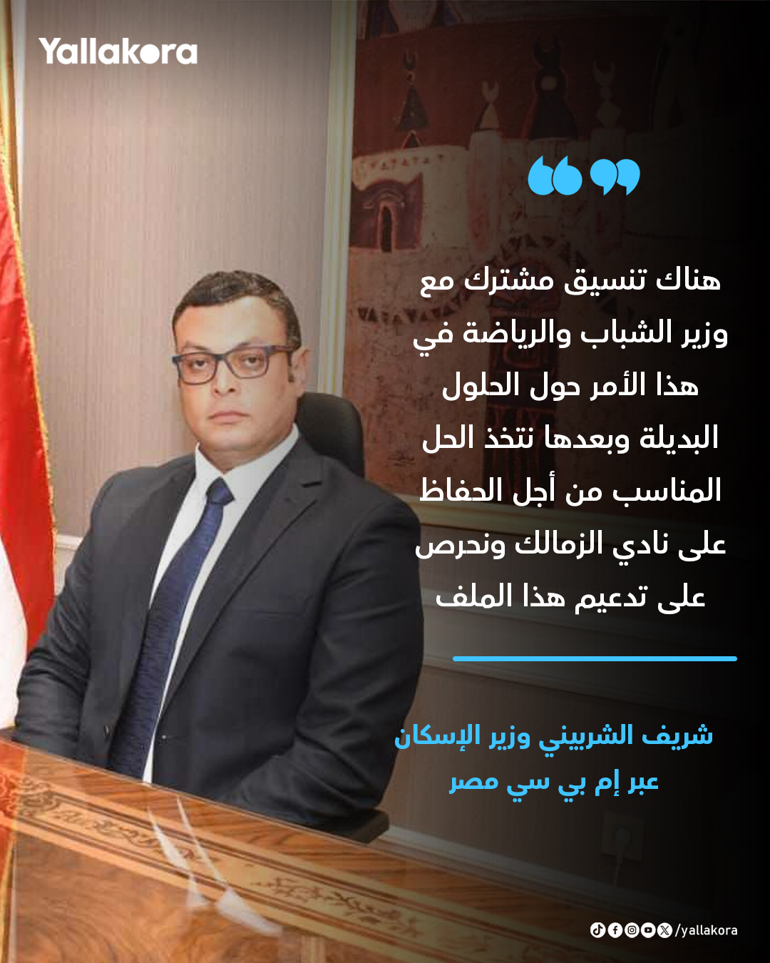 شريف الشربيني وزير الإسكان: الأرض تم تخصيصها منذ عام 2003، وما حصل المدة الإضافية انتهت، واللجان المختصة في الوزارة اتخذت اجراءاتها، وهناك تنسيق مشترك مع وزير الشباب والرياضة في هذا الأمر حول الحلول البديلة وبعدها نتخذ الحل المناسب من أجل الحفاظ على نادي الزمالك ونحرص على تدعيم