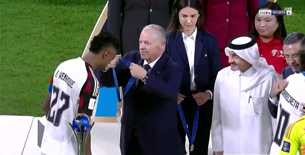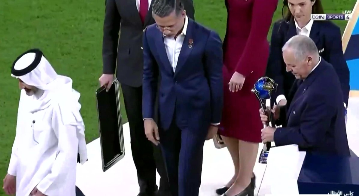 هاني أبو ريدة يقوم بتسليم فلامنجو البرازيلي الميداليات والكأس بعد فوزه في ربع نهائي بطولة كأس الإنتركونتيننتال