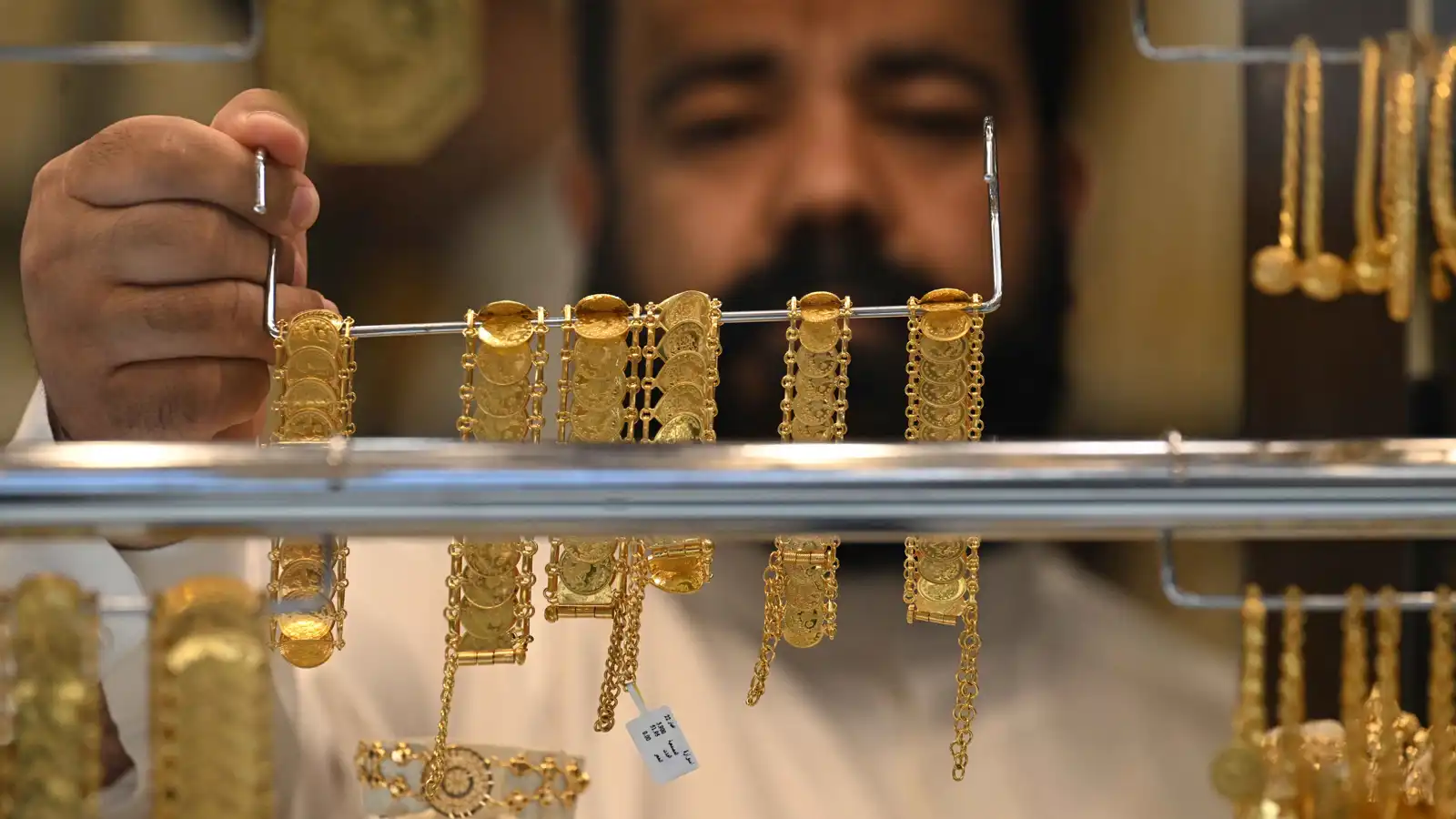صائغ كويتي يعرض قطعاً ذهبية في متجره بوسط مدينة الكويت، في 13 سبتمبر 2025.