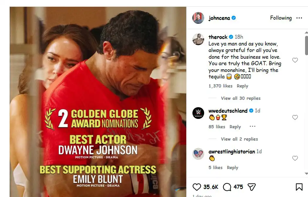 كشف ذا روك عن رسالة تقدير خاصة وجهها إلى جون سينا قبل أن يخوض الأخير نزاله الأخير في 13 ديسمبر، حيث يستعد سينا لإنهاء مسيرته داخل الحلبة عندما يواجه غونثر في واشنطن.