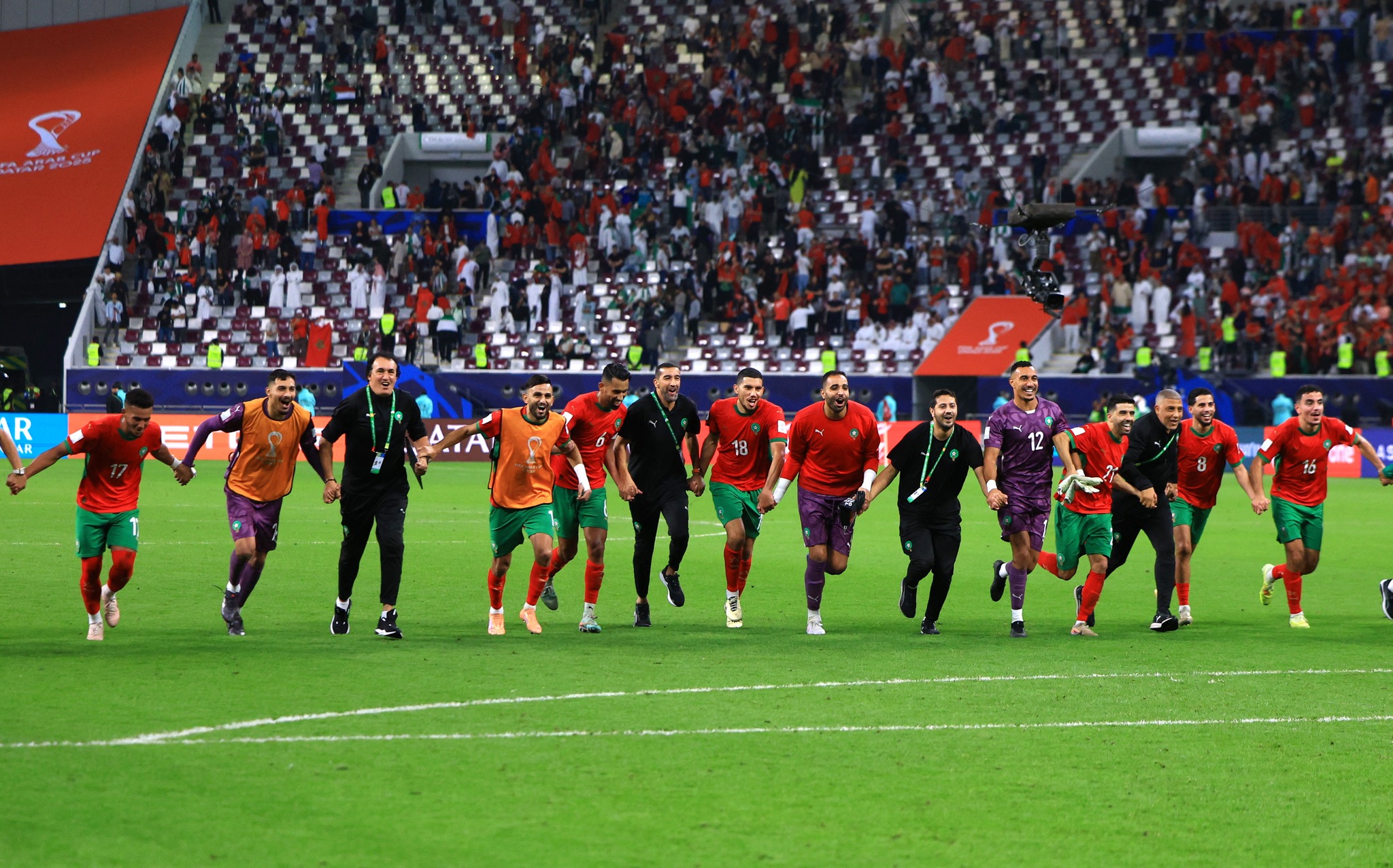 الاحتفالات مازالت مستمرة بين لاعبي منتخب المغرب والجماهير بعد التأهل إلى نصف نهائي كأس العرب