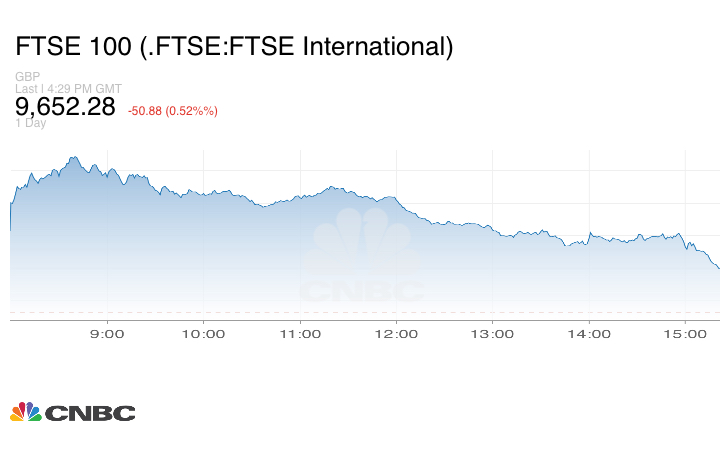 وخسر مؤشر فوتسي 100 البريطاني بنسبة 0.5%، مسجلاً 9,645.00 نقطة عند الإغلاق.