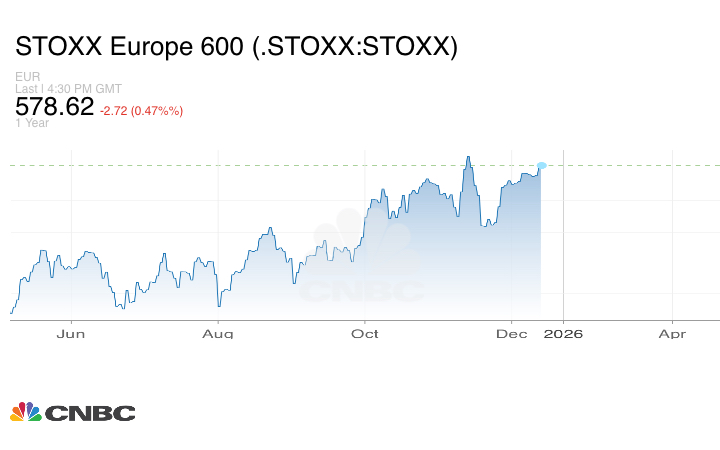وتراجع مؤشر ستوكس 600 الأوروبي بنسبة 0.5% مسجلاً 578.62 نقطة عند الإغلاق.
