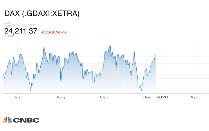 وأغلق مؤشر داكس الألماني متراجعاً بنسبة 0.3% عند 24,205.02 نقطة.