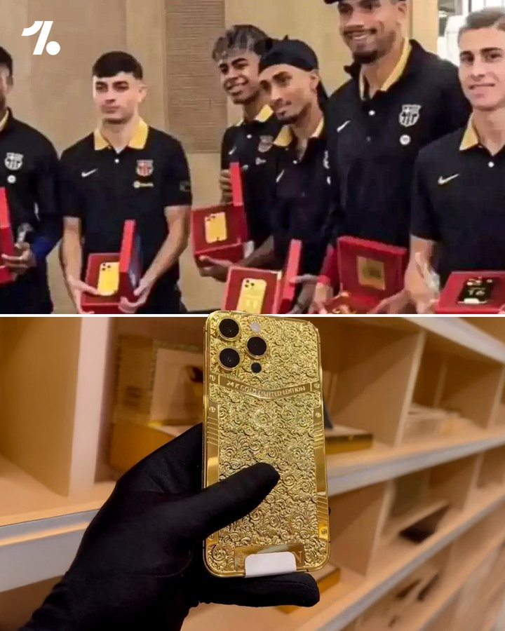 وتمثلت الهدايا التي حصل عليها لاعبو برشلونة هواتف "آيفون 17 برو ماكس" باللون الذهبي في لفتة مميزة من إحدى الجهات الراعية.