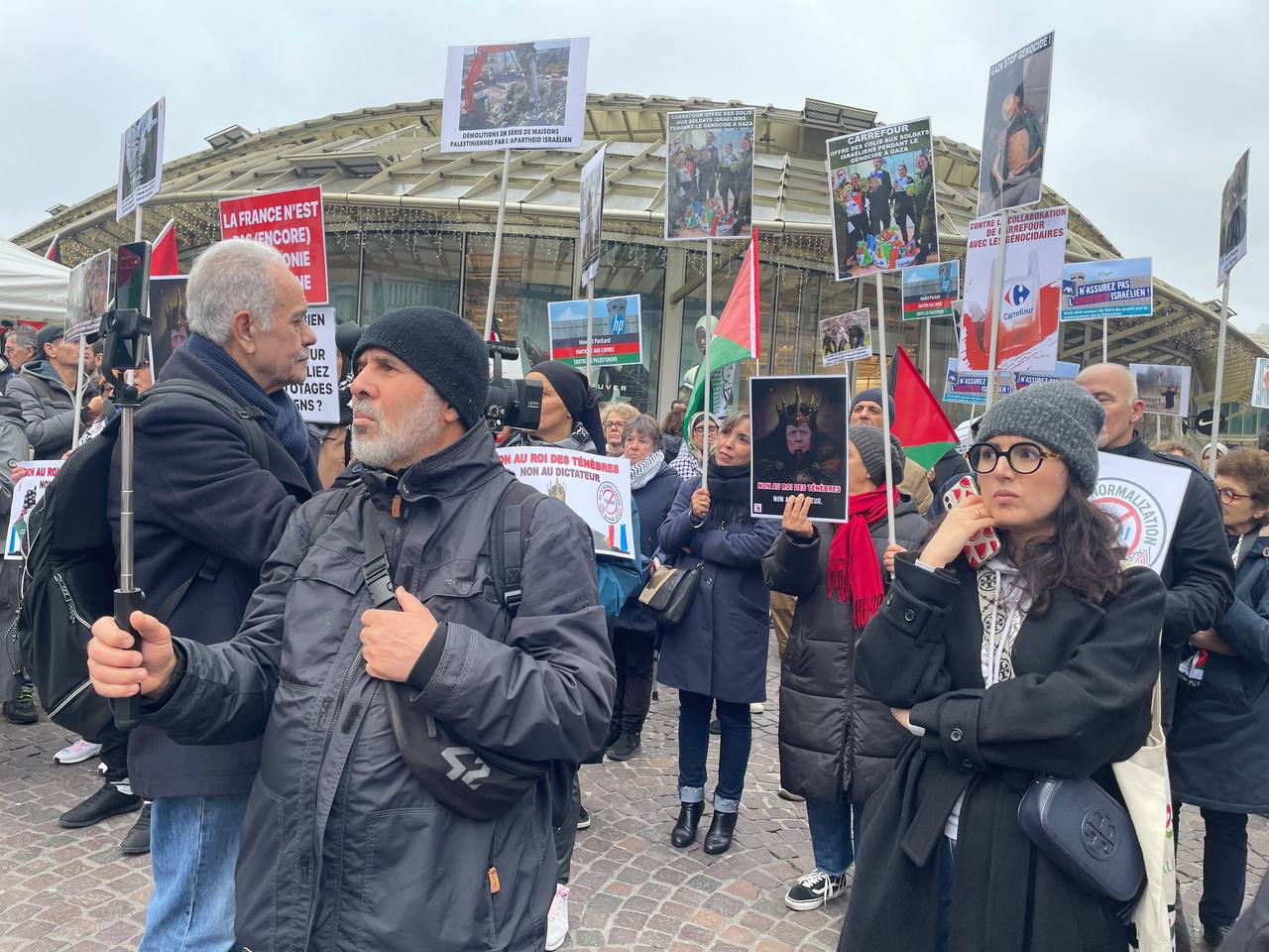 كما طالب المتظاهرون الذي نظمها مجموعات فرنسية وعربية بوقف سياسية التطبيع مع الكيان الصهيوني
