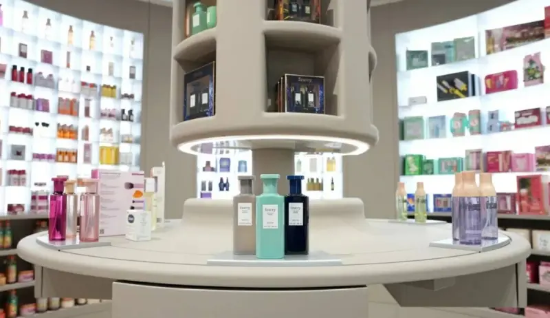 ويتواصل الزوار عبر ممرات تؤدي إلى قسم الجمال والمكياج المعاد تصميمه، وهو قسم يسهم بشكل كبير في أرباح الشركة.