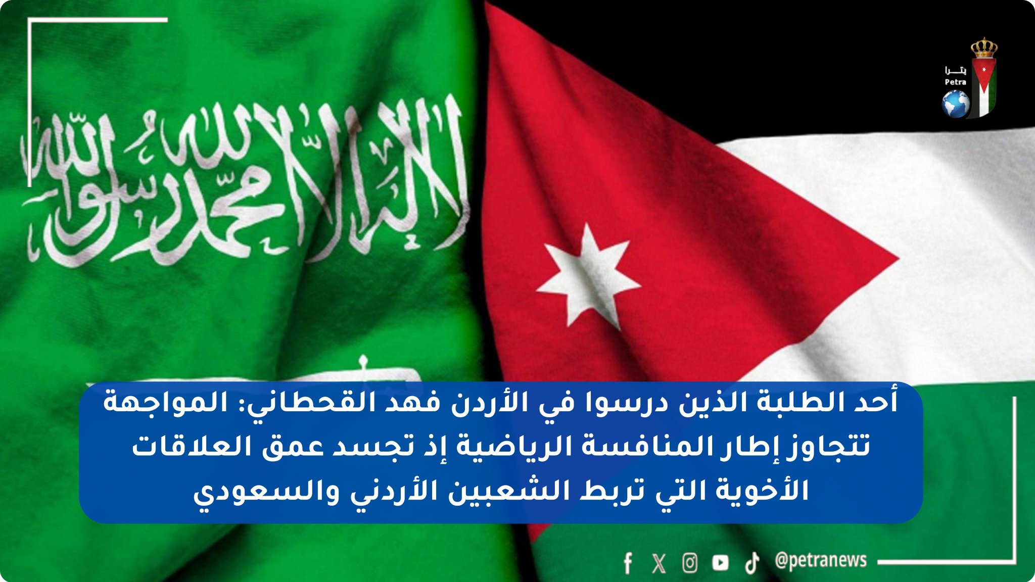 بدوره، أشار فهد القحطاني، وهو أحد الطلبة الذين درسوا في الأردن سابقاً، إلى أن الجماهير السعودية تنظر إلى المنتخب الأردني بكل احترام، كونه أحد أبرز المنتخبات الآسيوية والعربية، مؤكداً أن التنافس داخل الملعب لا يلغي حالة التقدير المتبادل خارجه، بل يعكس صورة حضارية للرياضة العربية أمام العالم.