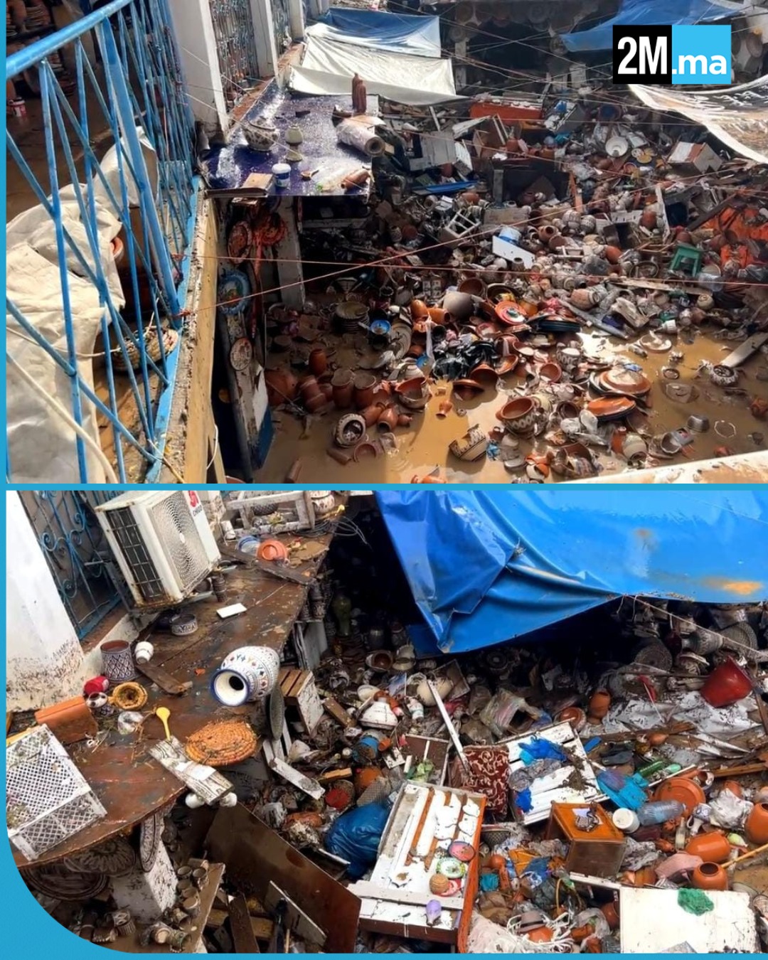 خسائر مادية كبيرة بقيسارية الفخار "دار سيكار" بالمدينة القديمة لآسفي، جراء السيول الفيضانية القوية التي شهدتها المدينة. #آسفي