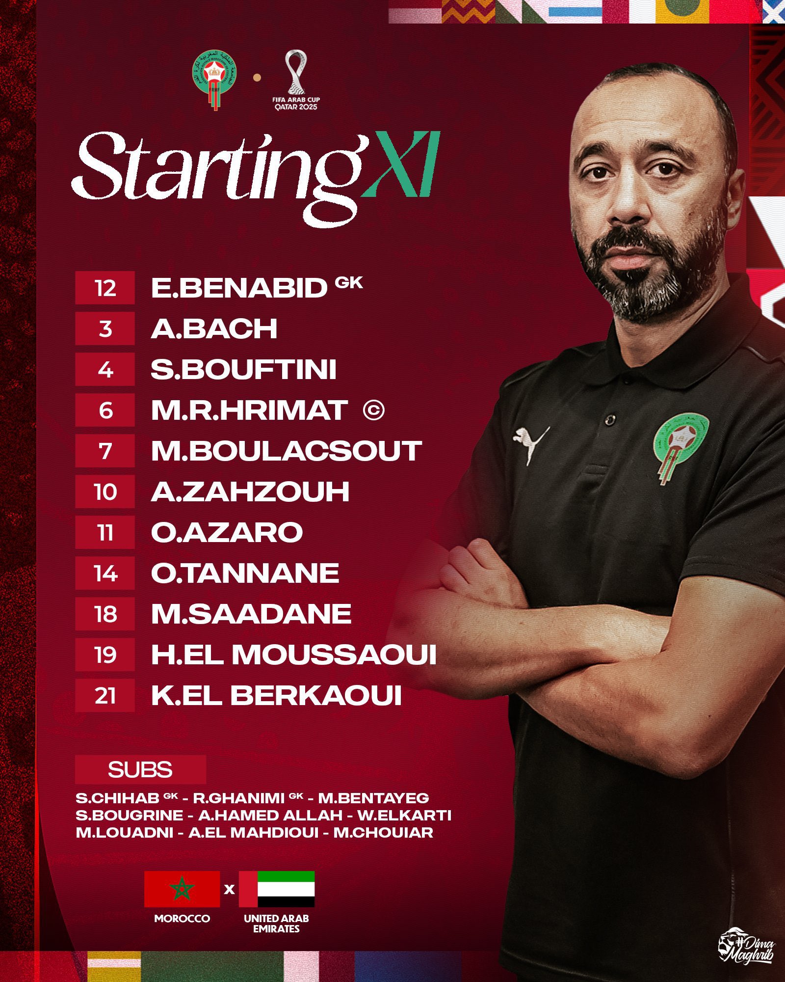 تشكيلة منتخبي الإمارات المغرب في نصف نهائي #كأس_العرب2025