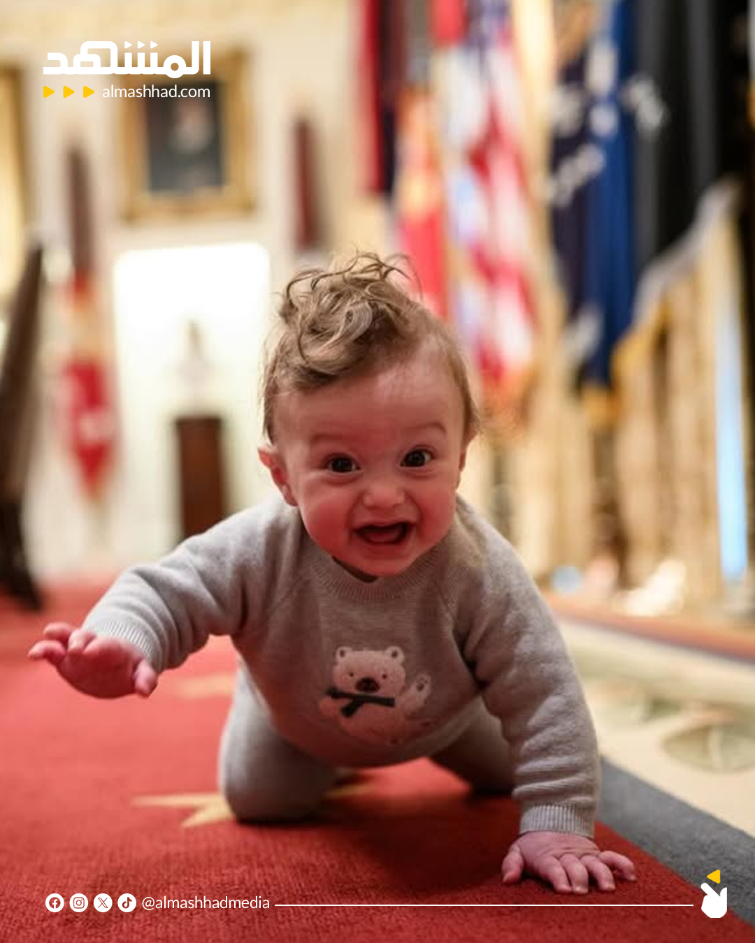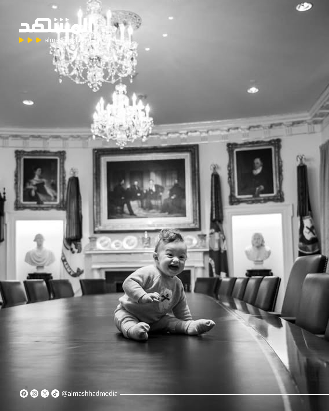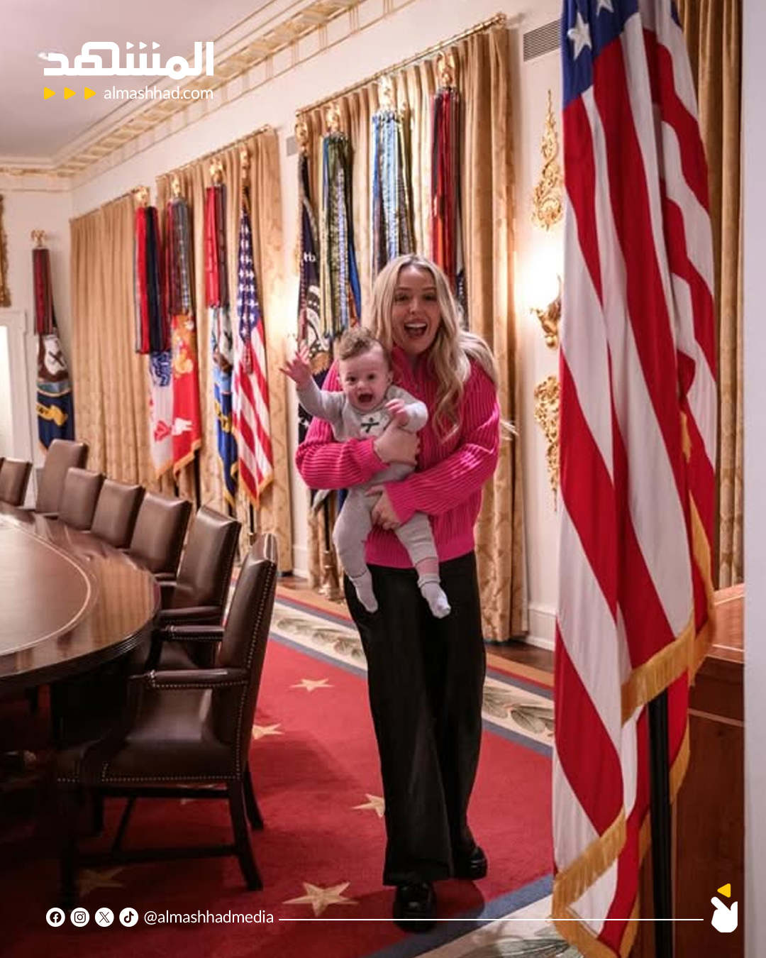 نشرت تيفاني ترامب، ابنة الرئيس الأميركي، مجموعة لقطات عفوية لطفلها ألكسندر، ظهر فيها وهو يلهو فوق طاولة الاجتماعات في المكتب البيضاوي إلى جانب جدّه #اخبار_المشهد