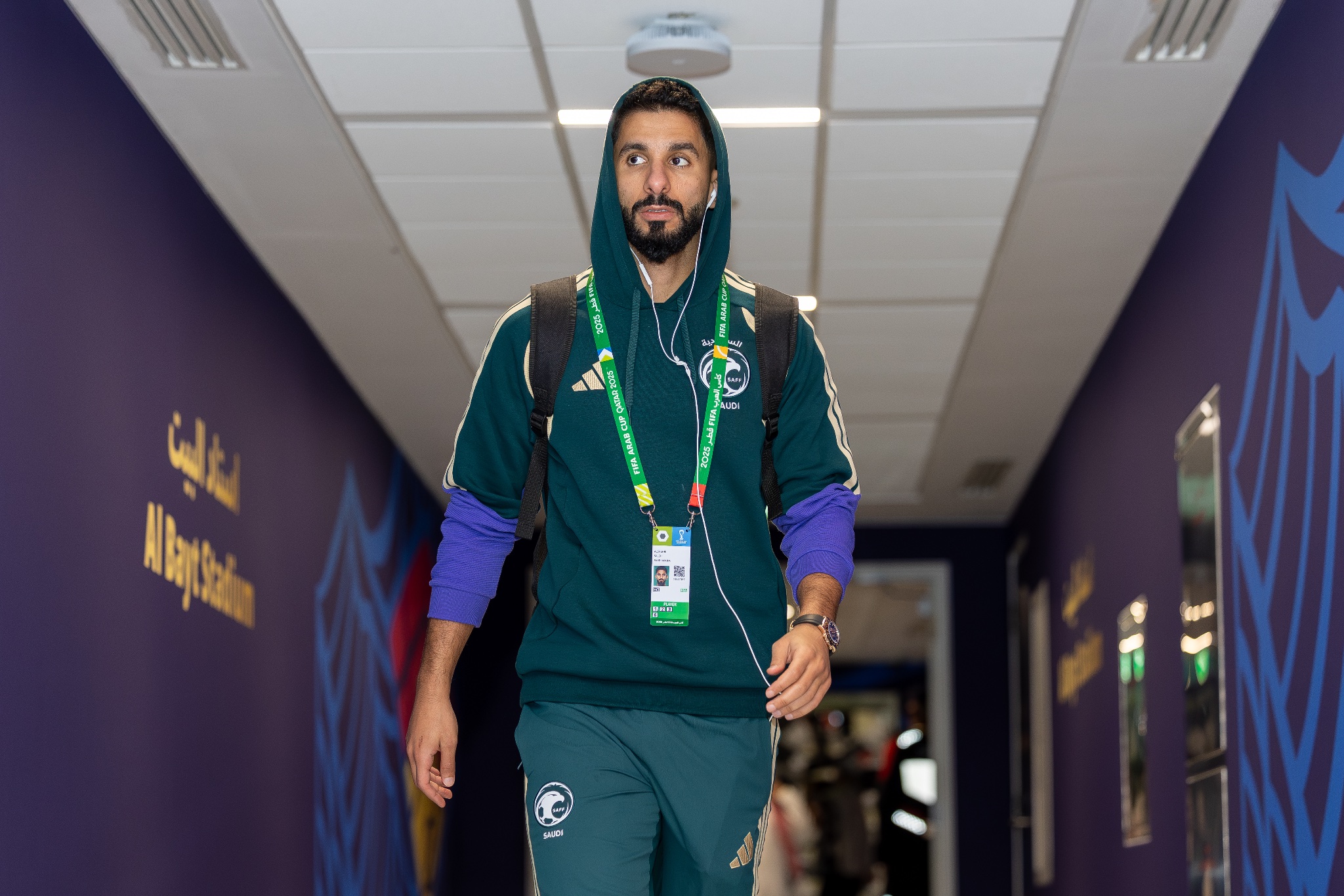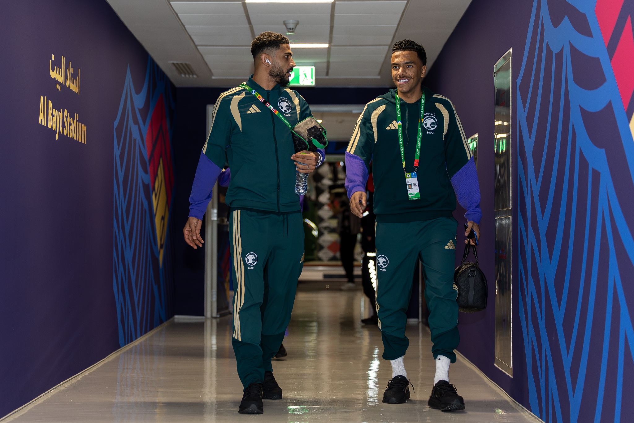 وصول لاعبي الأخضر إلى ملعب البيت #السعودية_الأردن