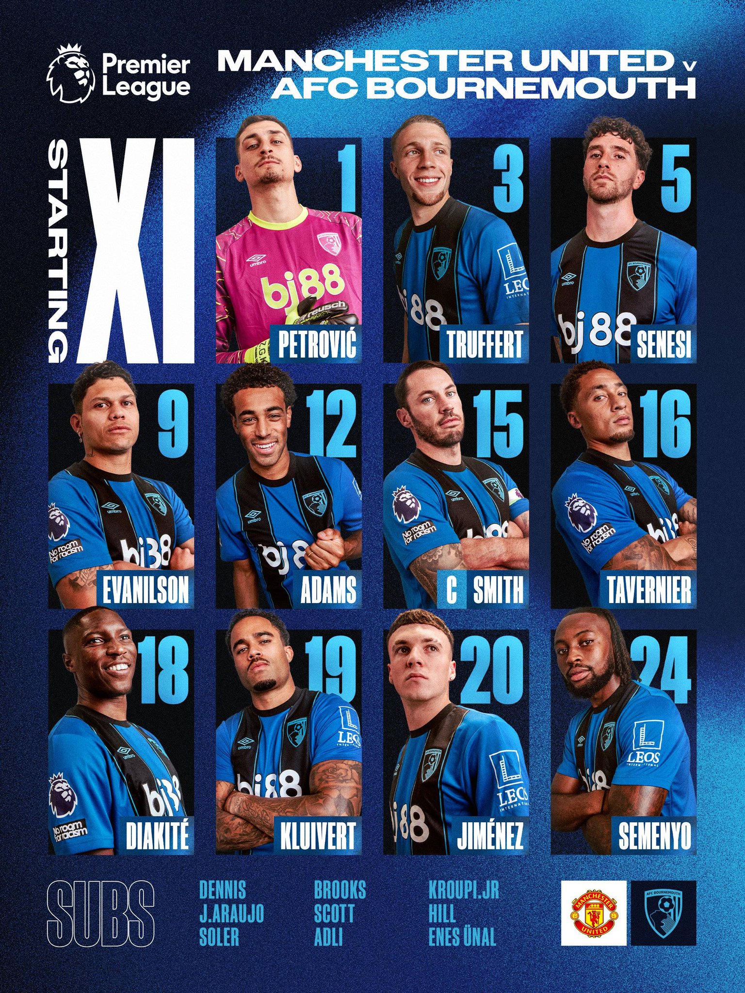 تشكيلة مباراة مانشستر يونايتد و بورنموث في ختام مباريات الجولة 16 من #الدوري_الإنجليزي