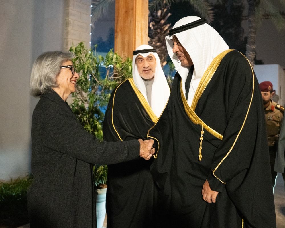 وقد وصل سمو ولي العهد إلى مكان الحفل حيث استقبل بكل حفاوة وترحيب من قبل رئيس مجلس الوزراء بالإنابة الشيخ فهد اليوسف ووزير الإعلام والثقافة ووزير الدولة لشؤون الشباب عبدالرحمن المطيري والمشرف العام لدار الآثار الإسلامية الشيخة حصة الصباح.