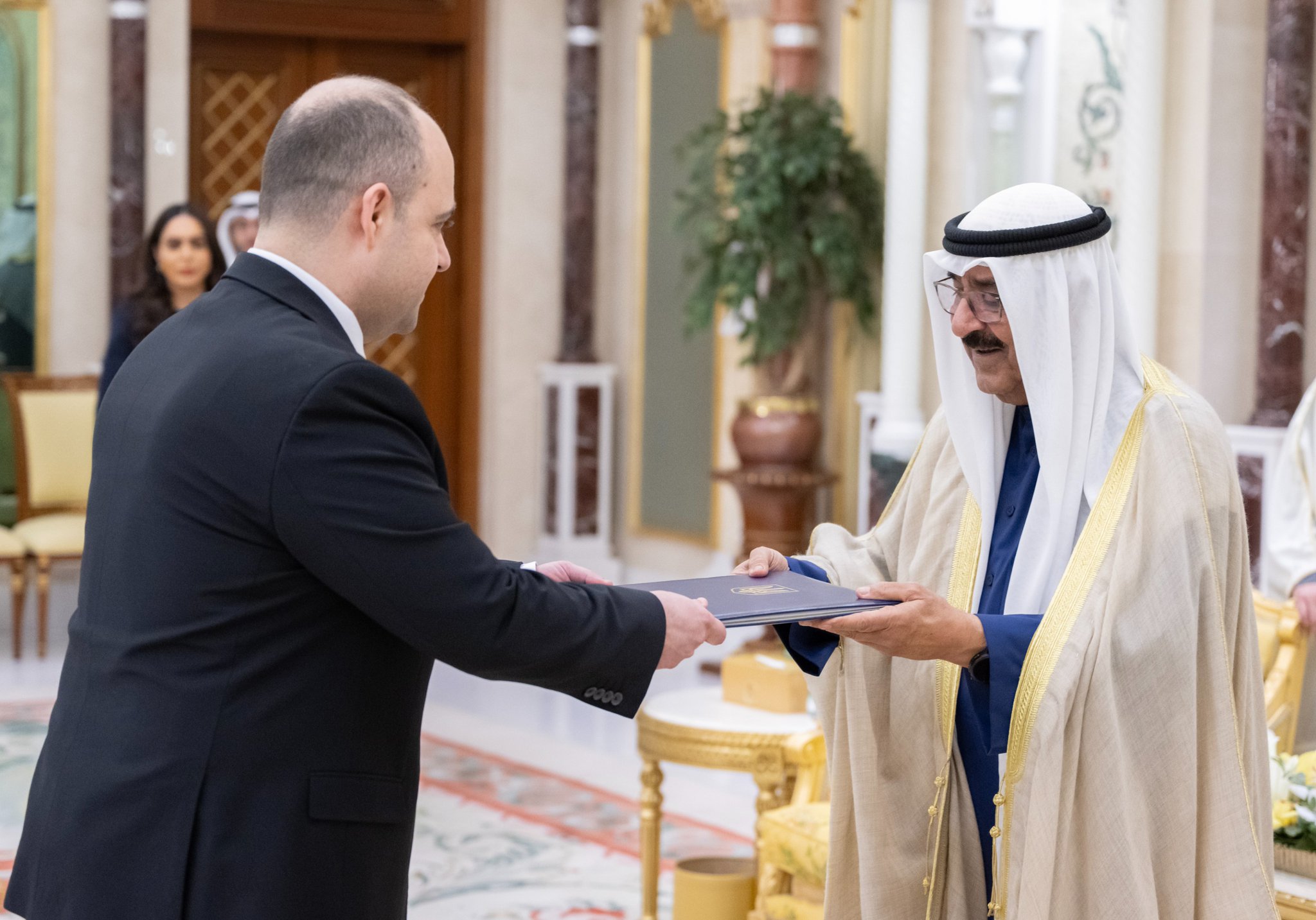 (كونا) احتفل في قصر بيان، صباح اليوم، بتسلم سمو أمير البلاد الشيخ مشعل الأحمد، أوراق اعتماد كل من السفير ويريش رامسوك سفيرا لمملكة هولندا والسفير محمد جابر أبوالوفا سفيرا لجمهورية مصر العربية والسفير غادي الخوري سفيرا للجمهورية اللبنانية والسفير قدسي رشيد سفيرا للمملكة المتحدة لبريطانيا العظمى وشمال ايرلندا والسفير مكسيم صبح سفيرا لجمهورية اوكرانيا وذلك كسفراء لبلادهم لدى دولة الكويت.