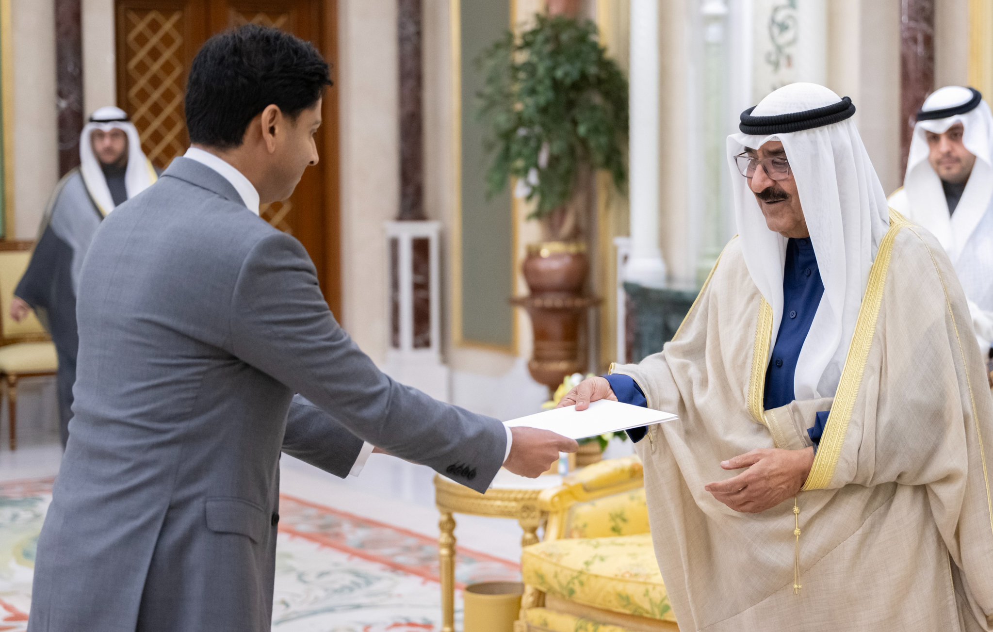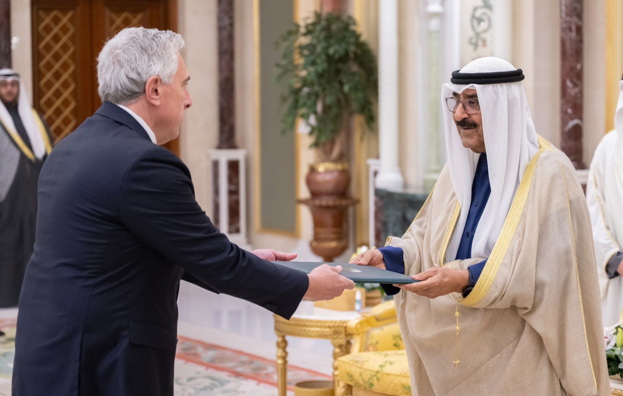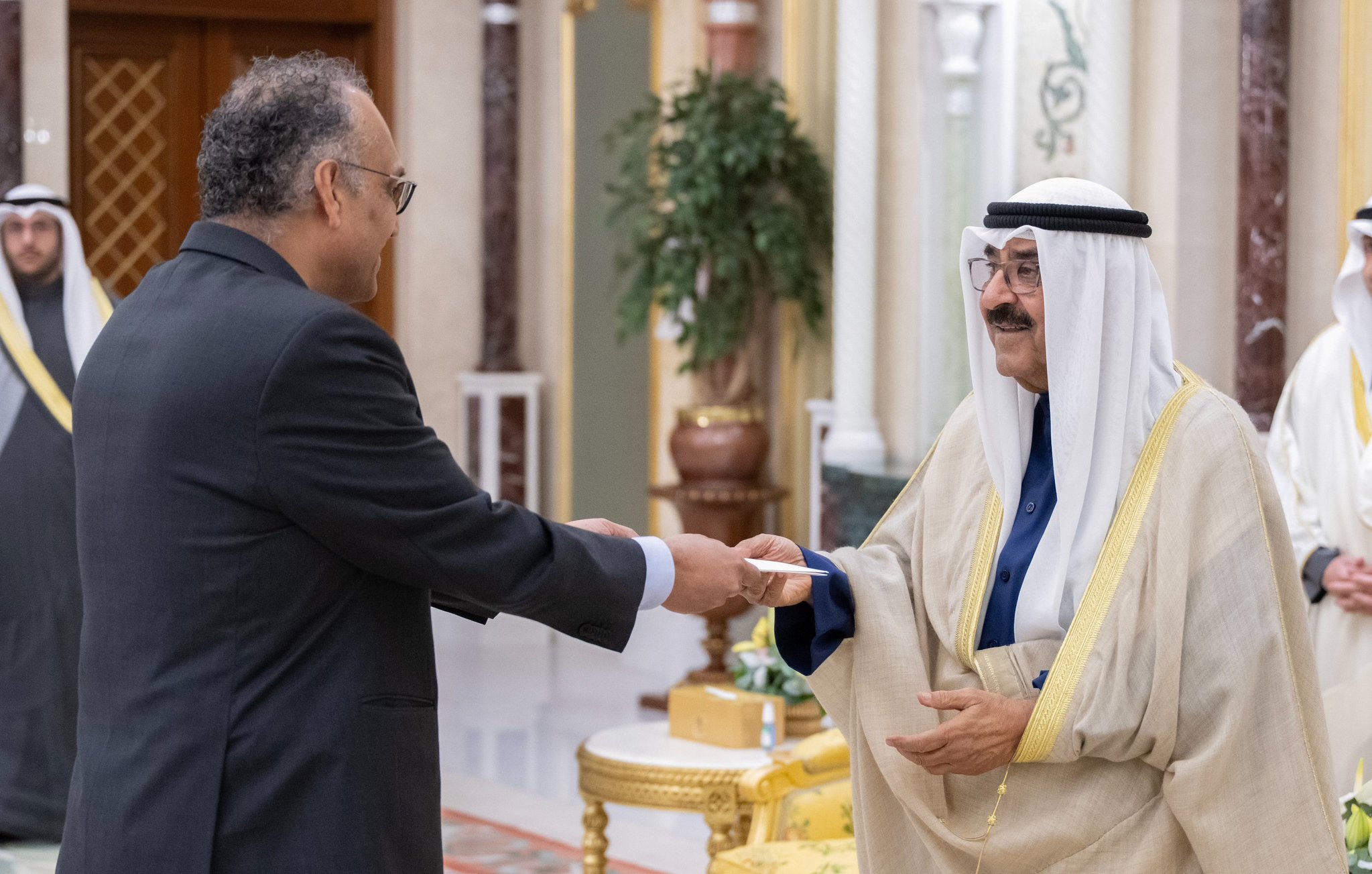 احتفل في قصر بيان صباح اليوم بتسلم سمو أمير البلاد الشيخ مشعل الأحمد، أوراق اعتماد كل من السفير ويريش رامسوك سفيراً لمملكة هولندا والسفير محمد جابر أبو الوفا سفيراً لجمهورية مصر العربية، والسفير غادي الخوري سفيراً للجمهورية اللبنانية، والسفير قدسي رشيد سفيراً للمملكة المتحدة لبريطانيا العظمى وشمال إيرلندا، والسفير مكسيم صبح سفيراً لجمهورية أوكرانيا، وذلك كسفراء لبلادهم لدى دولة الكويت.