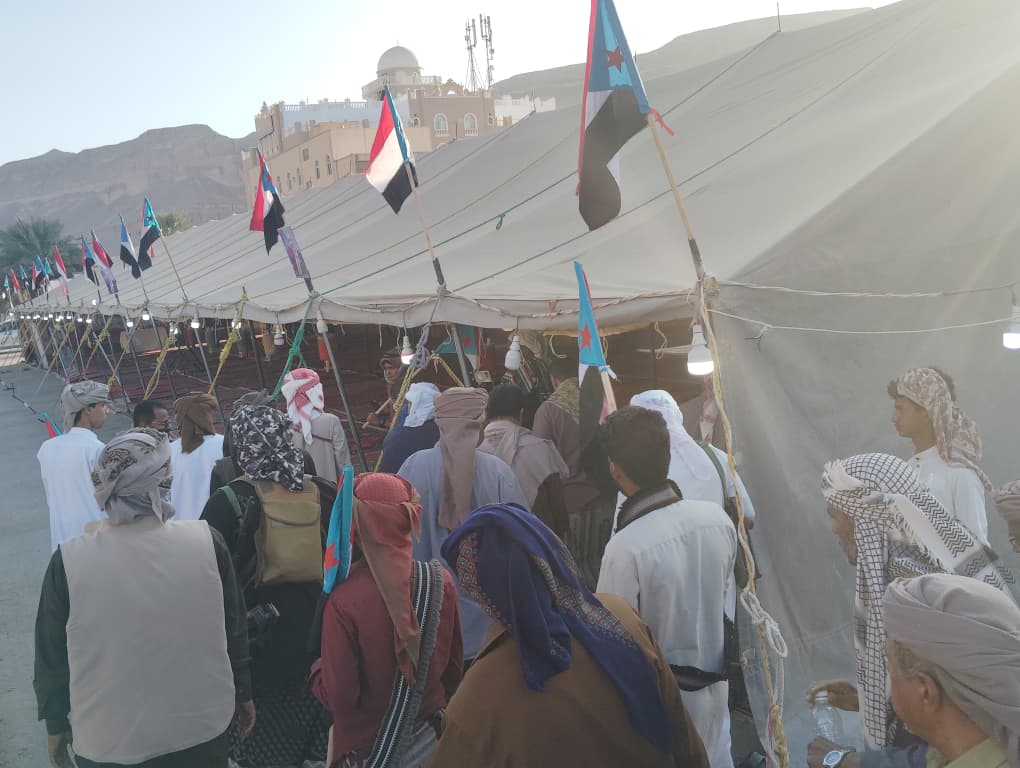 وصول وفد قبيلة بلعبيد من المقادمة والمشايخ والأعيان إلى مخيم الاعتصام المفتوح بمدينة سيئون دعمًا لاعتصام أبناء وادي وصحراء حضرموت. #القوات_الجنوبيه_طارده_للارهاب