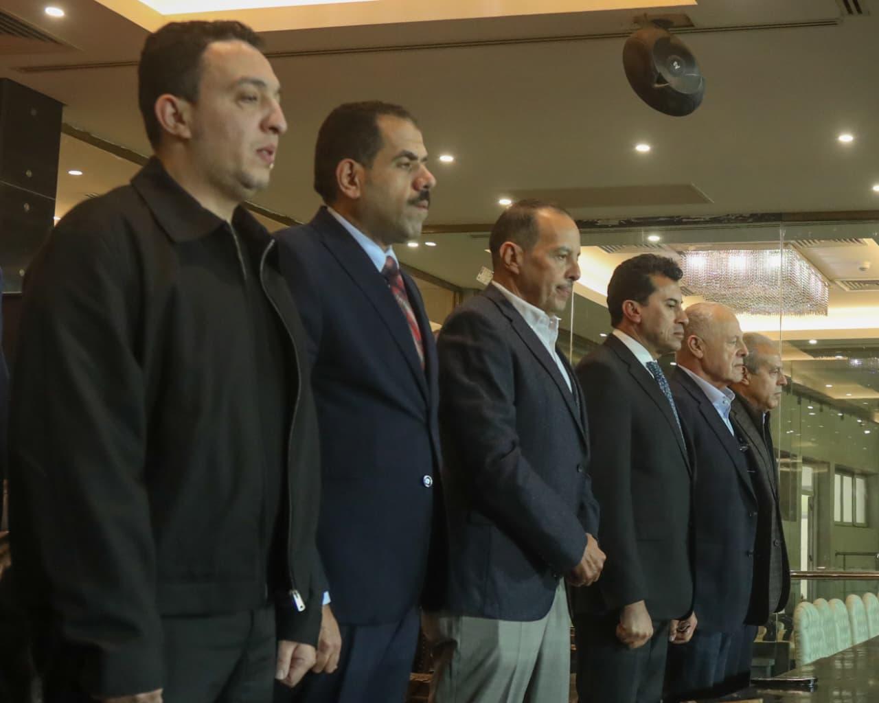 كما ظهر برفقة الوزير ورئيس الاتحاد، كل من خالد الدرندلي، نائب رئيس الاتحاد، وحمادة الشربيني ومصطفى أبو زهرة عضوي مجلس إدارة الاتحاد، والدكتور مصطفى عزام، الأمين العام للاتحاد.