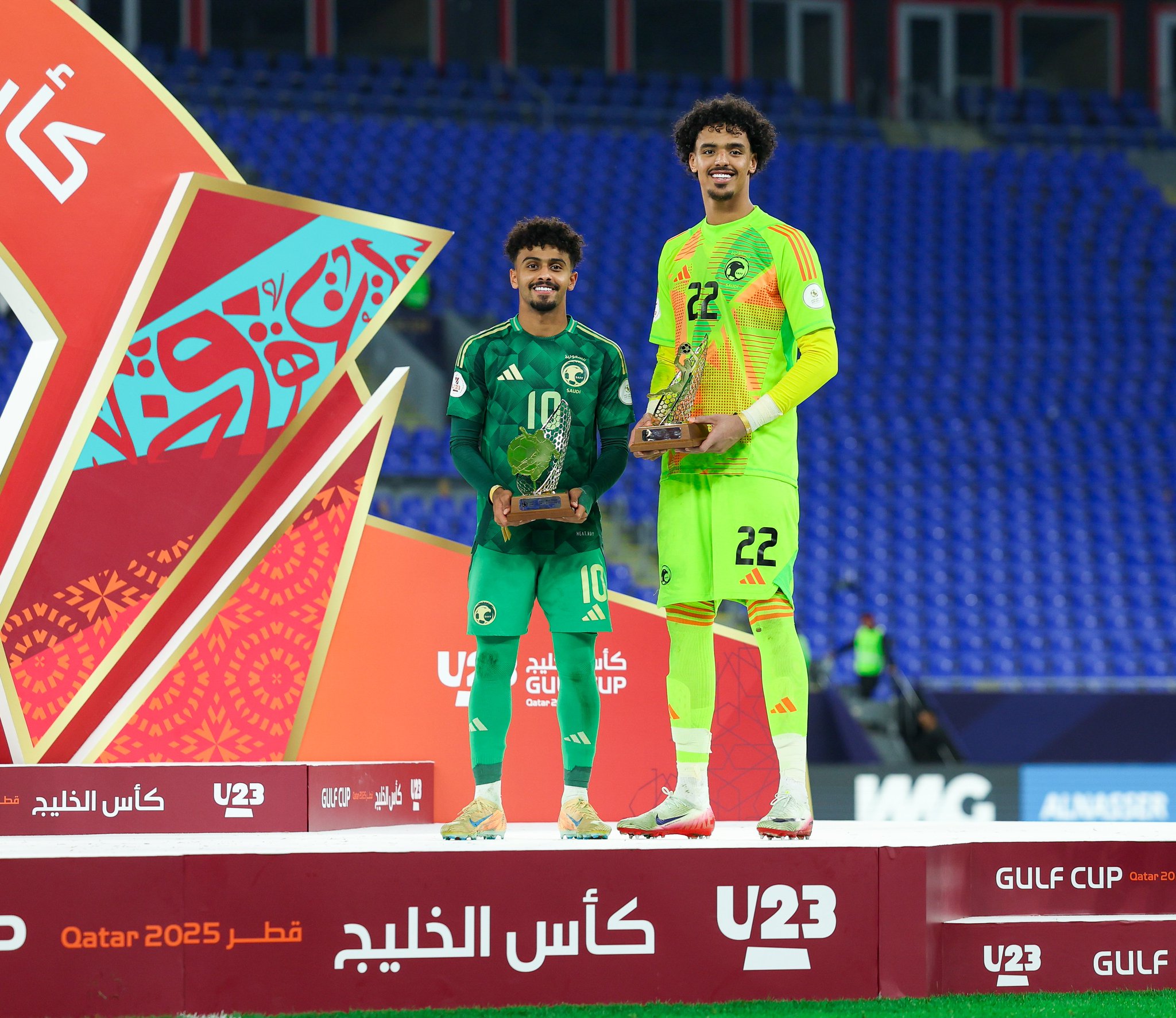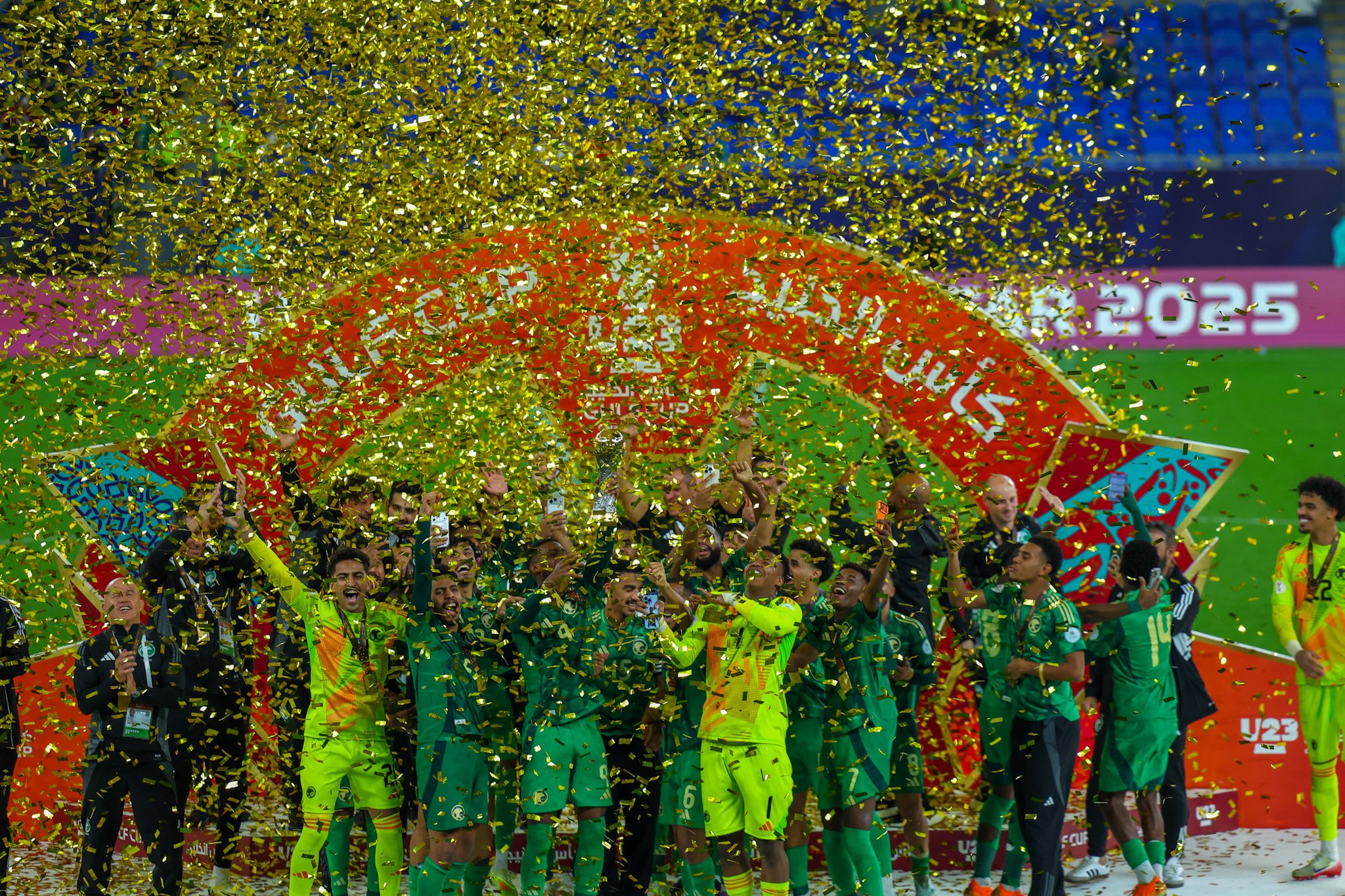 توّج المنتخب السعودي تحت (23) عامًا لكرة القدم بلقب بطولة كأس الخليج تحت (23) عامًا (2025)، بعد فوزه على المنتخب العراقي بهدفين دون مقابل، في المباراة النهائية التي أقيمت اليوم، على ملعب (974) في العاصمة القطرية الدوحة.
