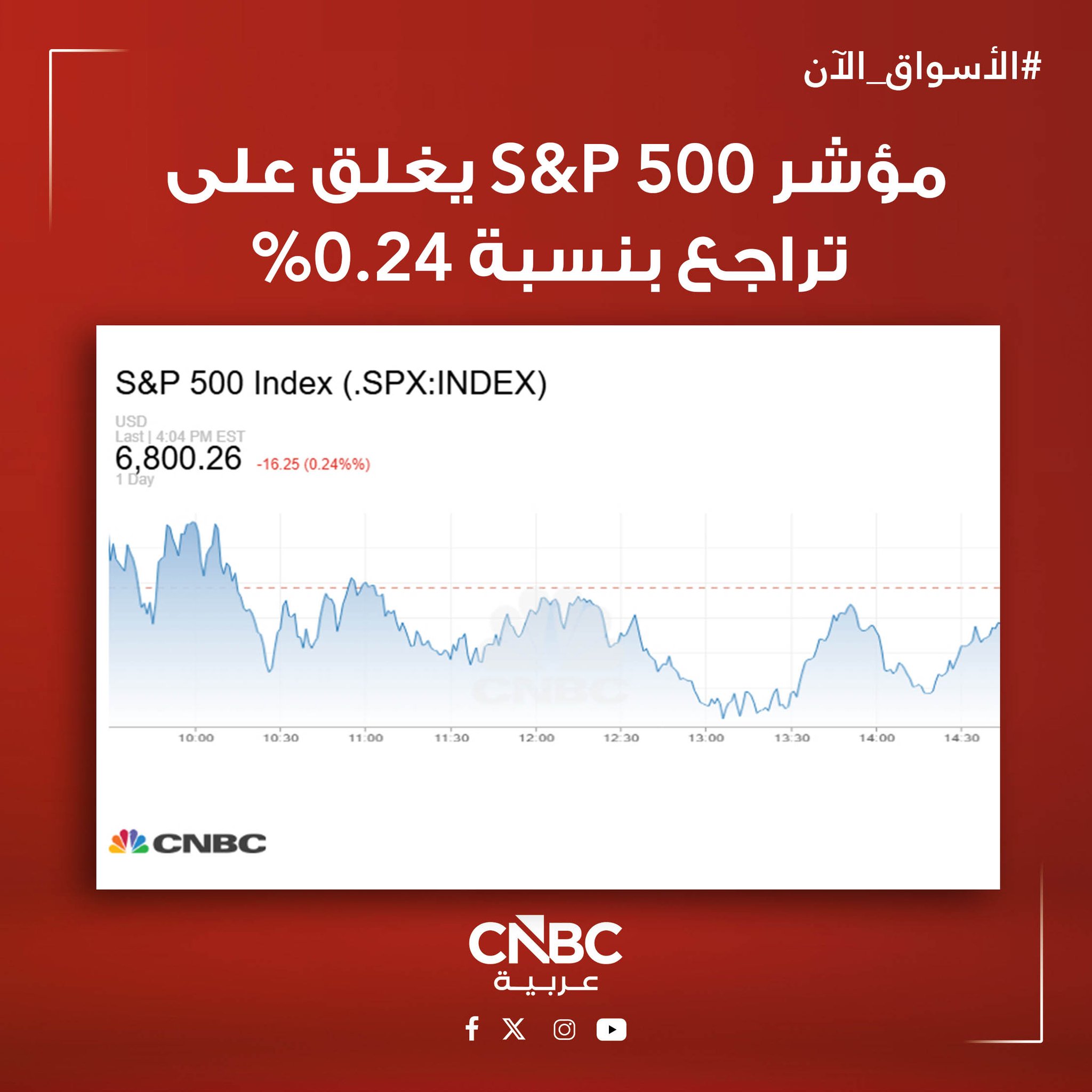 وتراجع المؤشر ستاندرد اند بورز 500 بمقدار 16.4 نقطة، أو 0.24 %، إلى 6800.12 نقطة.