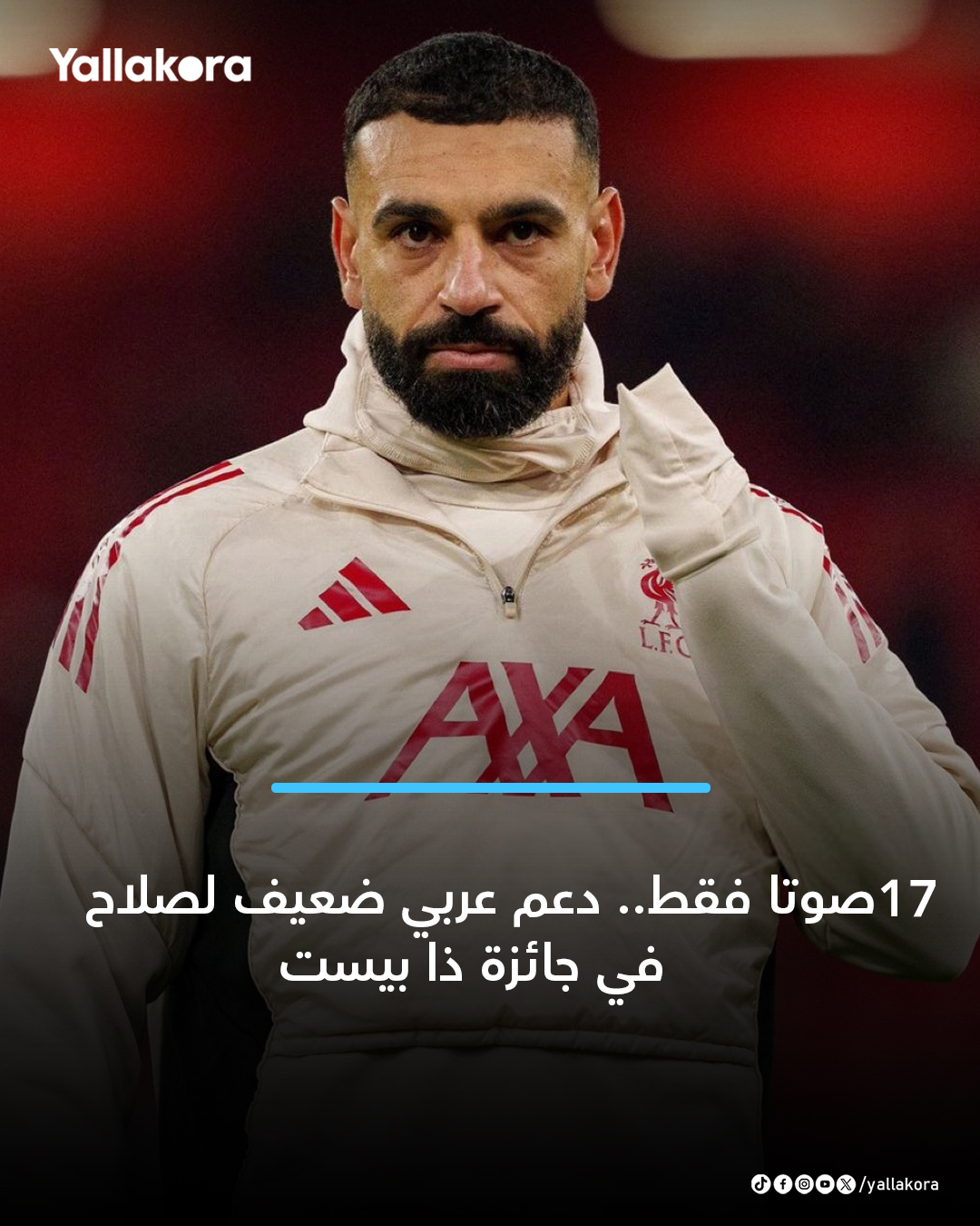 حصل محمد صلاح، نجم ليفربول الإنجليزي على دعم عربي ضعيف في استفتاء الاتحاد الدولي لكرة القدم، لاختيار أفضل لاعب في العالم، المعروفة باسم جائزة "ذا بيست"، والتي تُوج بها عثمان ديمبيلي، لاعب باريس سان جيرمان الفرنسي.