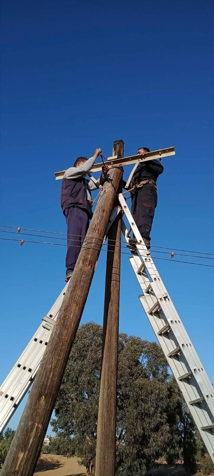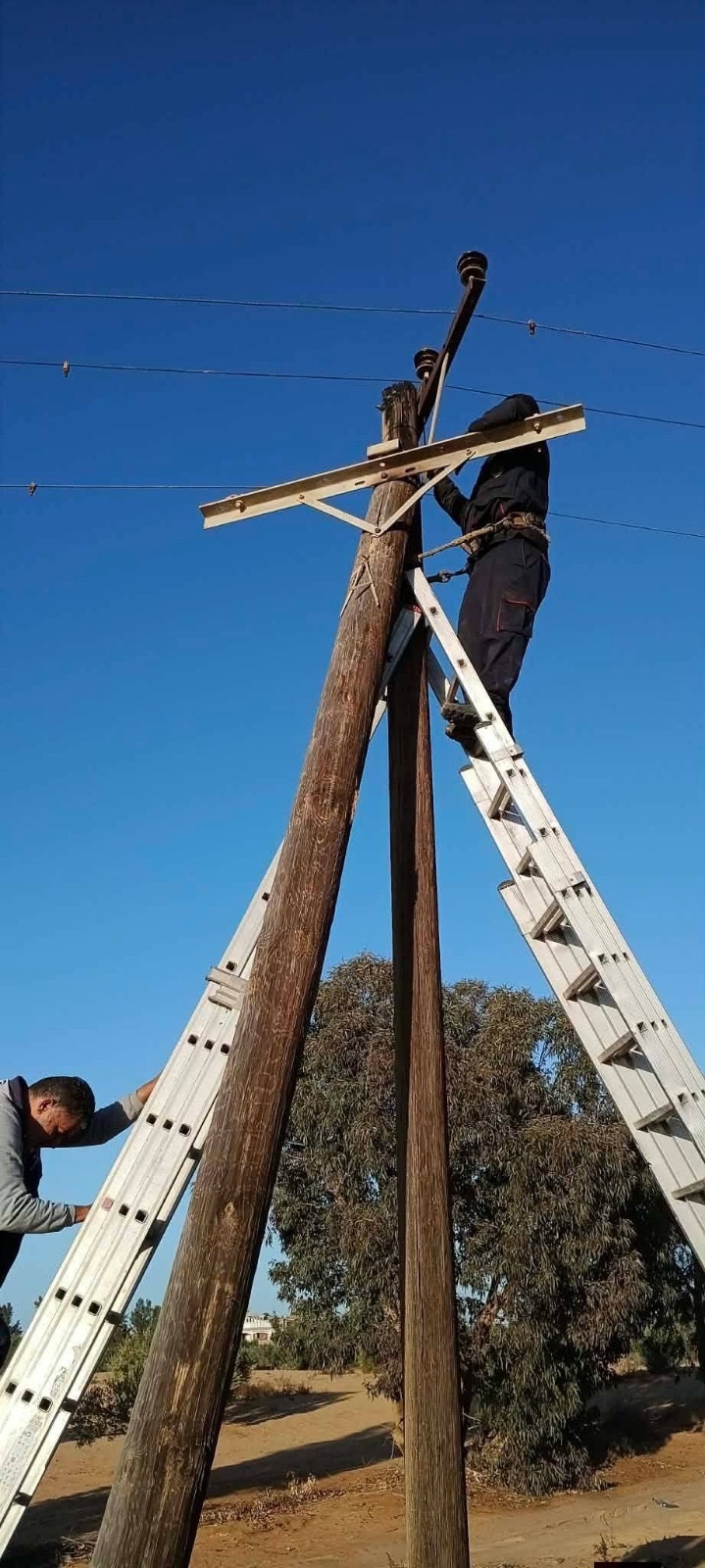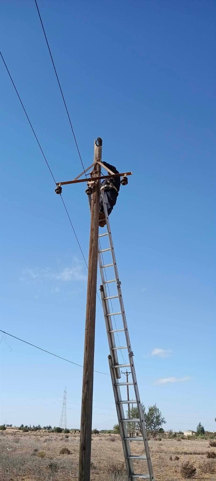 صور| الشركة العامة للكهرباء: قامت فرقة الصيانة بدائرة توزيع الجميل بأعمال صيانة طارئة على خط حشانة. #الساعة24