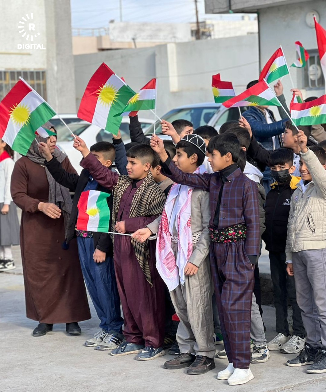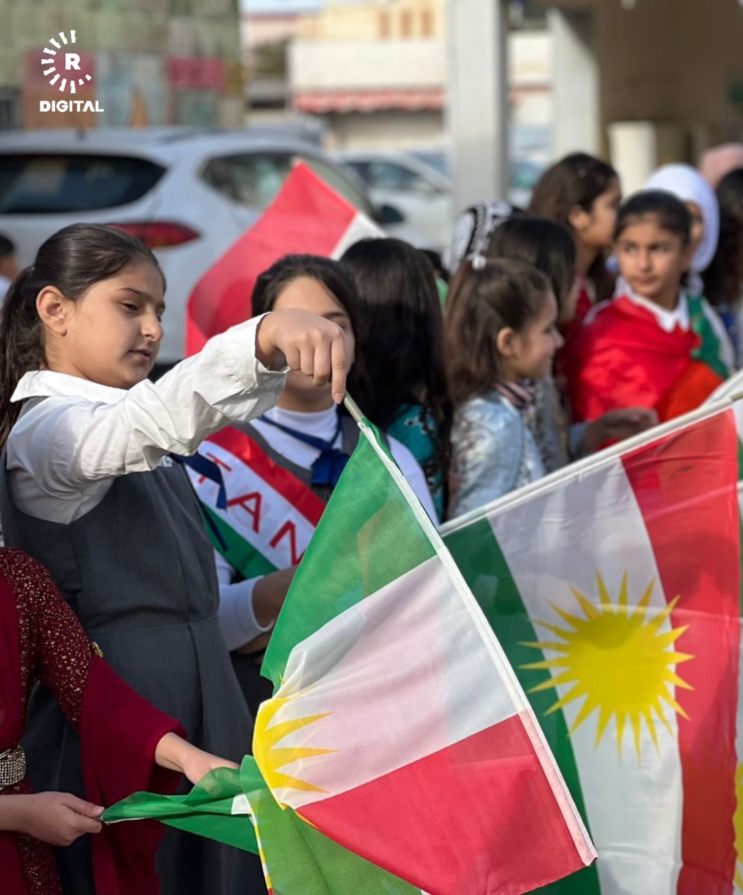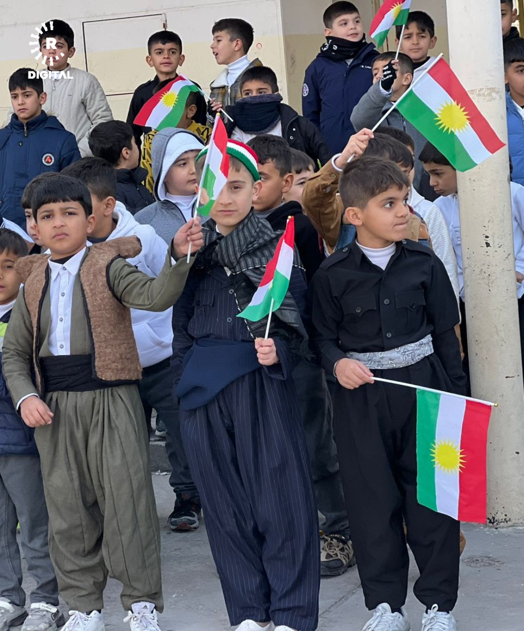 تلاميذ في كركوك يحتفلون بيوم العلم الكوردستاني مرتدين الزي الكوردي التقليدي. صور - هردي محمد - رووداو