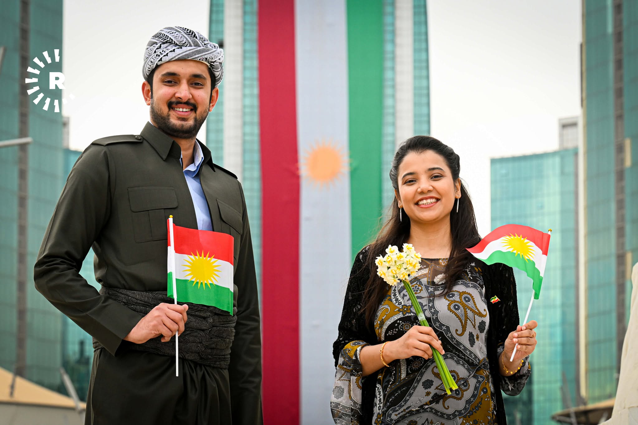 باكستانيان يعيشان في أربيل يحتفلان مع الكورد بيوم العلم الكوردستاني مرتديان الزي التقليدي. صور - بلند طاهر - رووداو