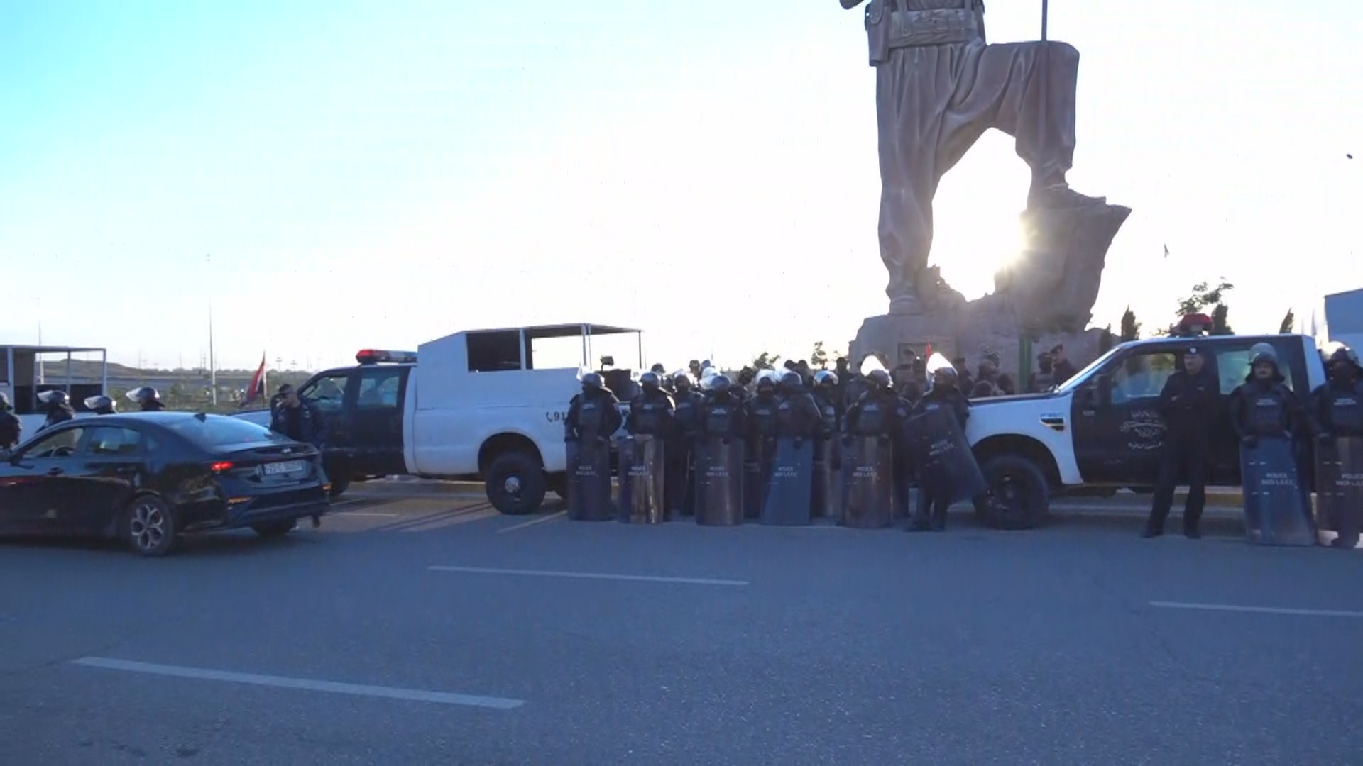 انتشار أمني حول تمثال البيشمركة في مدخل مدينة كركوك، لمنع شبان كورد من إعادة علم كوردستان إلى يده