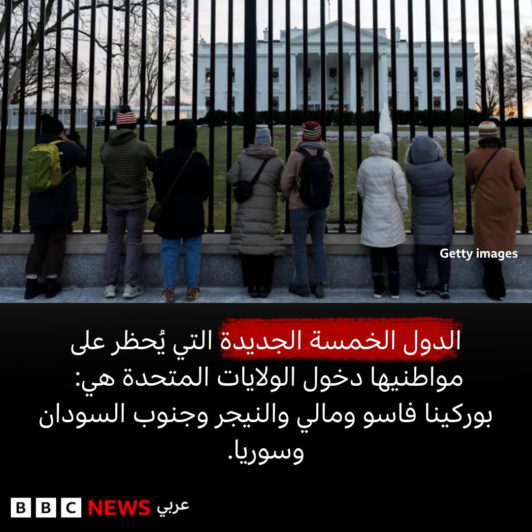 وقال البيت الأبيض إن القيود تهدف إلى "حماية أمن الولايات المتحدة"، وستدخل حيّز التنفيذ في 1 يناير/كانون الثاني 2026.