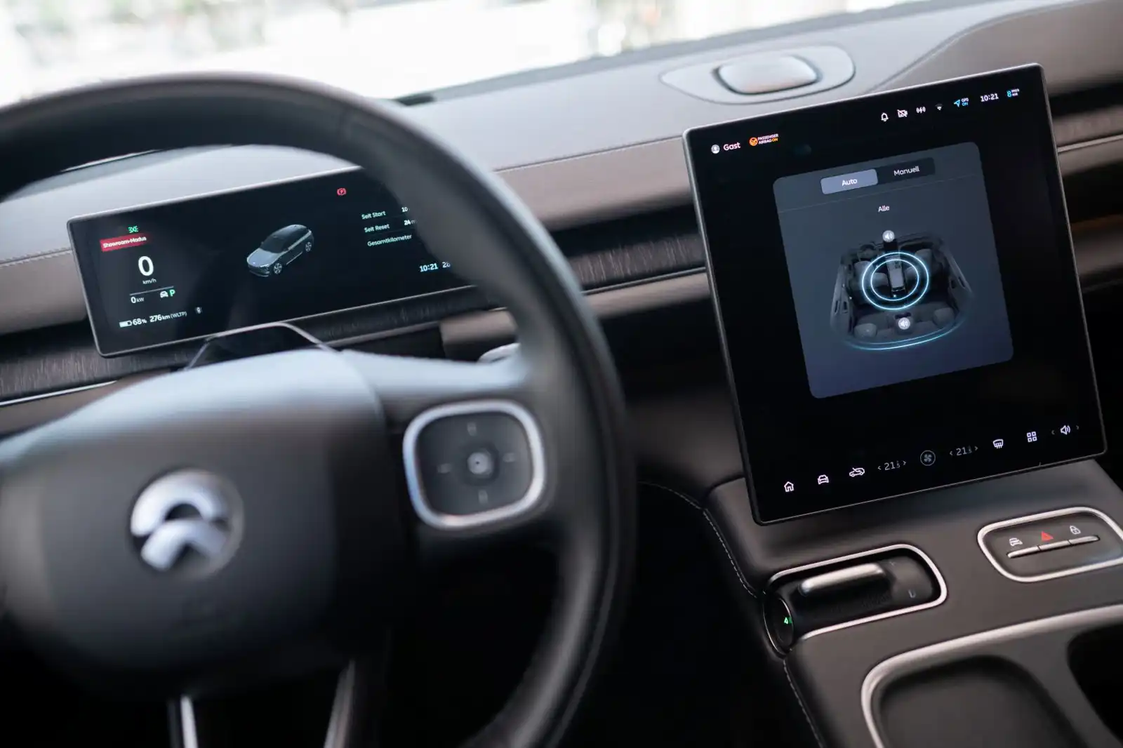 شاشة ذكية في سيارة «نيو» طراز (EL6) الكهربائية، تعرض إعدادات الصوت في برلين، ألمانيا، 21 مايو 2024