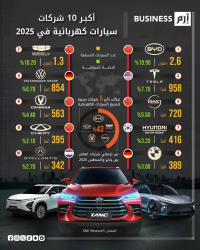 الصين تهيمن على سوق السيارات الكهربائية عالمياً في 2025