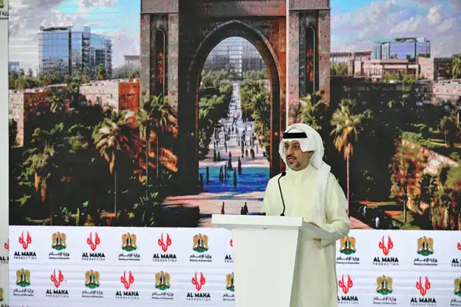 محمد العنزي رئيس مجلس إدارة شركة المها الدولية، خلال الإعلان عن مشروع مدينة بوابة دمشق للإنتاج الإعلامي والفني والسياحي -30 يونيو 2025