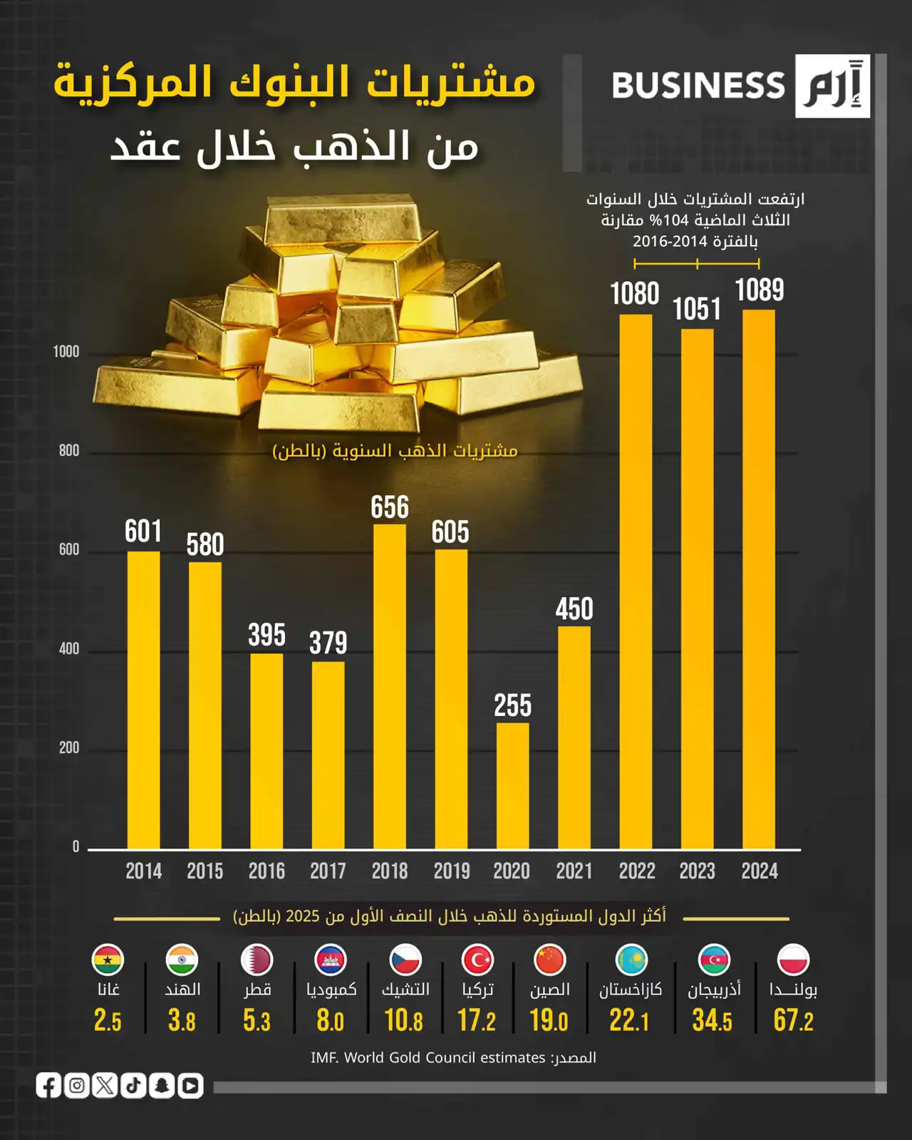 البيانات وفق مجلس الذهب العالمي.