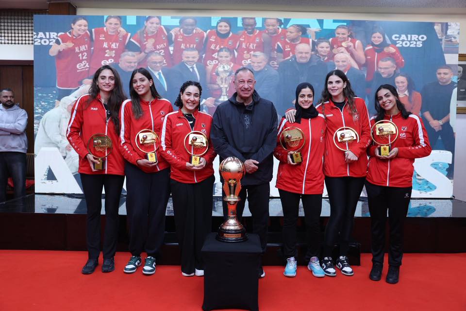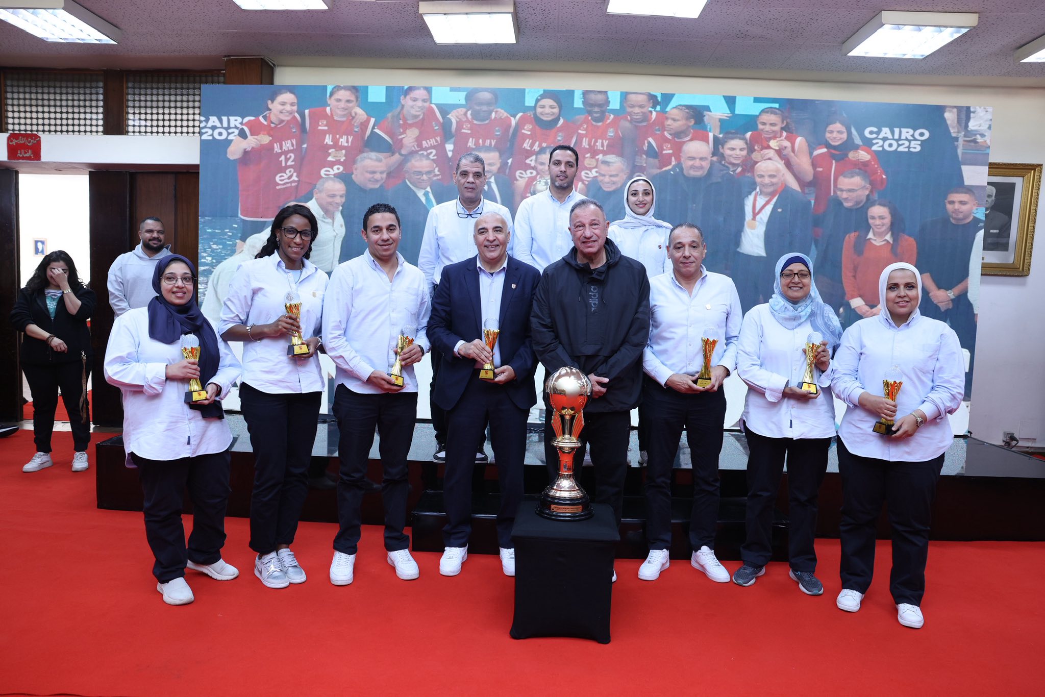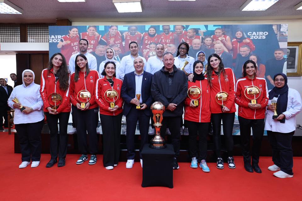 محمود الخطيب يُكرم فريق سيدات كرة السلة بعد التتويج بلقب بطولة إفريقيا للأندية