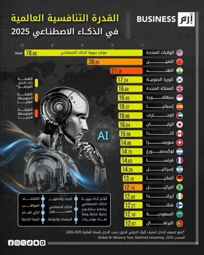 أميركا في صدارة الدول الأكثر تنافسية بالذكاء الاصطناعي عالمياً