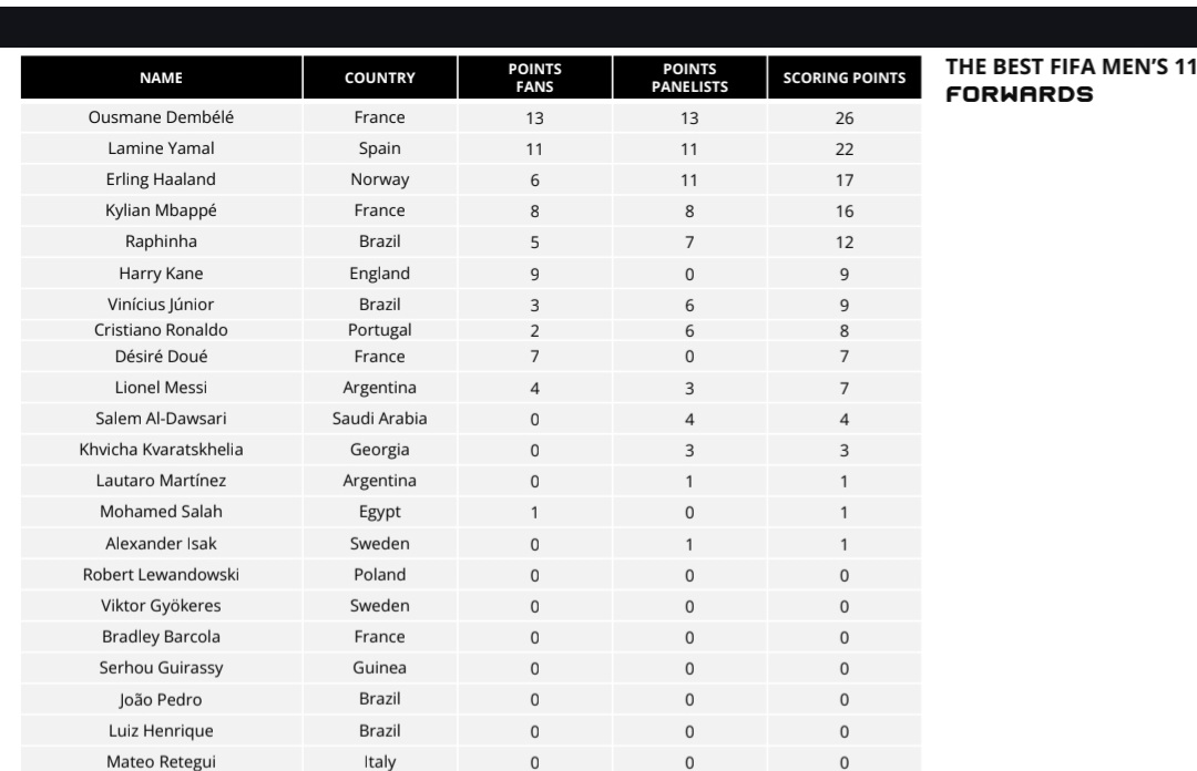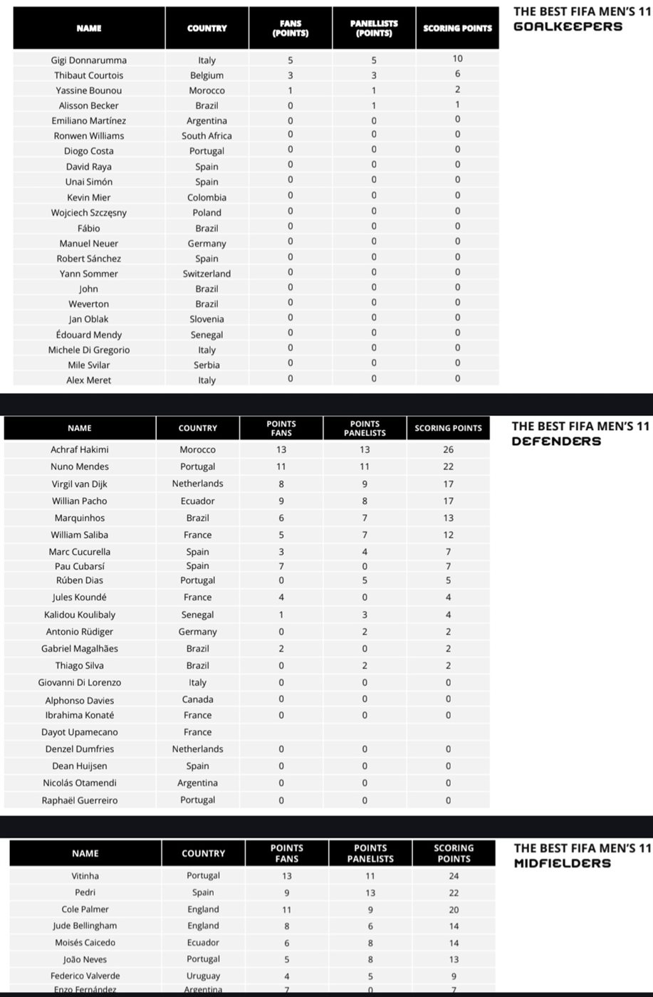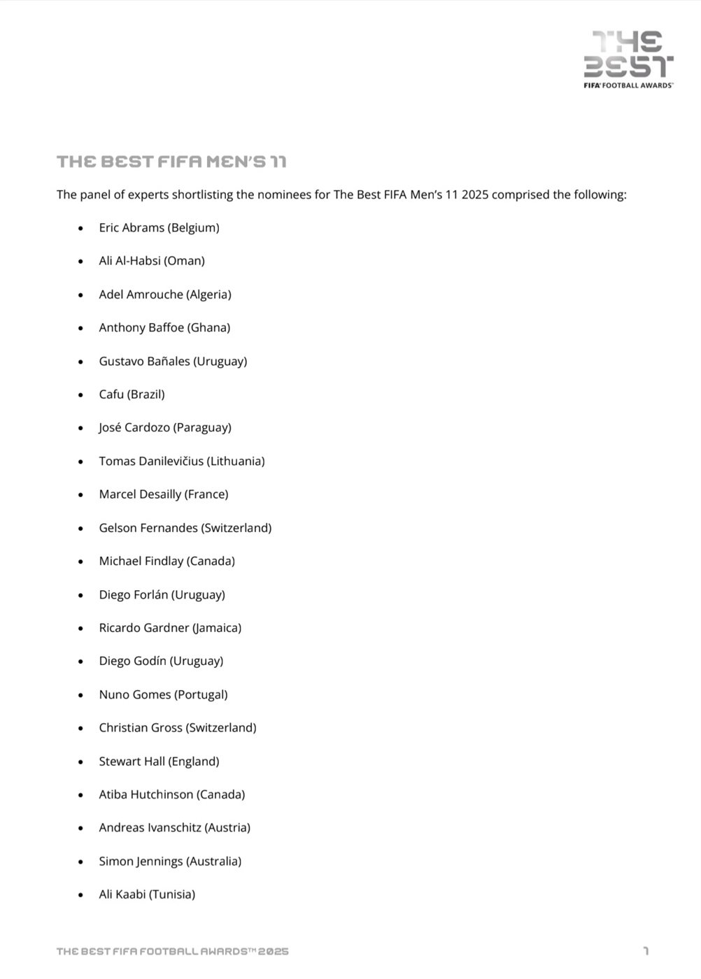 أكد فيفا وجود استقلالية تامة بين الجائزتين، جائزة The Best FIFA Men s Player: تقيم الأداء الشامل للاعب طوال الفترة المحددة (من أغسطس 2024 إلى أغسطس 2025) وجائزة The Best Men s 11: تعتمد على تصويت منفصل لكل مركز، حيث يُقارن اللاعب فقط بمنافسيه في المركز نفسه، لذا، لا يعني الترتيب المتقدم في جائزة أفضل لاعب بالضرورة الدخول في التشكيل المثالي.