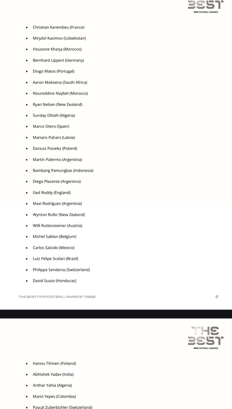 وفي رد رسمي حصلت عليه «الوفد» من إدارة الإعلام بالاتحاد الدولي لكرة القدم (فيفا)، أوضح الاتحاد الأسباب التنظيمية والحسابية التي أدت إلى هذا الغياب، مستنداً إلى لوائح «Rules of Allocation The Best FIFA Football Awards 2025».