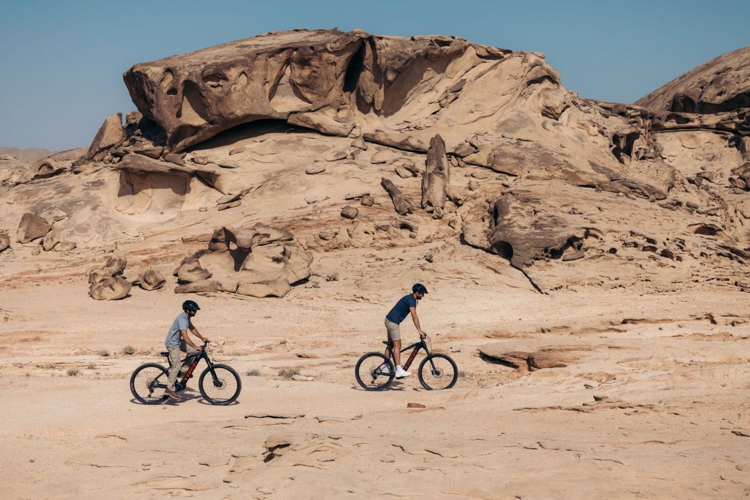 أكون تأخد الزوار في رحلات استكشاف تشمل تسلّق الجبال، وركوب الدراجات عبر الدروب الصحراوية