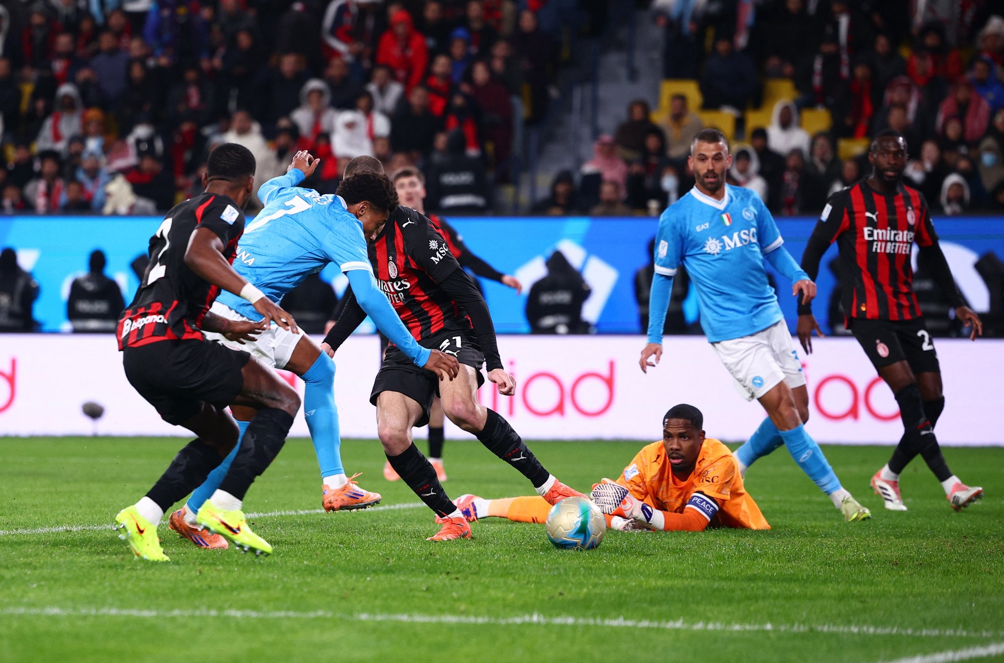 نابولي يتغلب على ميلان بهدفين دون مقابل ويصعد لنهائي كأس السوبر الإيطالي لمواجهة الفائز من مواجهة الغد بين إنتر وبولونيا