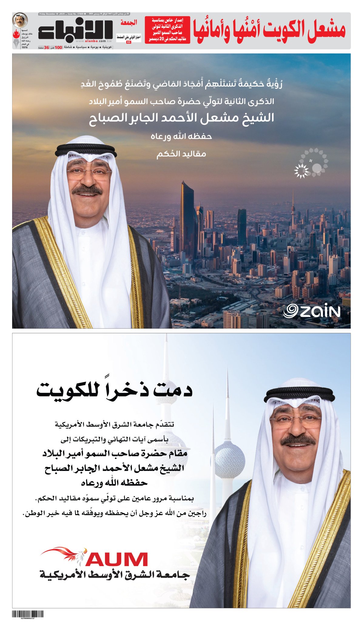 عدد جريدة الأنباء ليوم "الجمعة" الموافق 19-12-2025