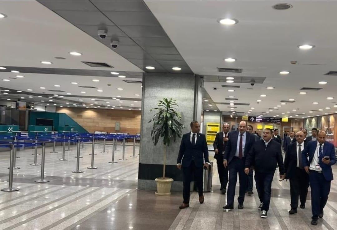 جاء ذلك، في ضوء توجيهات الدكتور سامح الحفني، وزير الطيران المدني، بمتابعة الوضع الأمني والصحي والبيئي في المطارات المصرية. وخلال الجولة، قامت اللجنة بتفقد صالتي السفر والوصول وكاونترات الجوازات والجمارك وبرج المراقبة ومبنى الأرصاد الجوية، كما تم متابعة جاهزية المطار والتركيز على تقييم الإجراءات الأمنية والصحية المُطبقة، والإطلاع على سير حركة الركاب بصالتي السفر والوصول،، فضلًا عن الوقوف على انسيابية الحركة الجوية وكذلك عمليات التأمين، حيث تم الإطمئنان على مستويات الخدمات المقدمة للركاب داخل صالات السفر والوصول وجميع المناطق الخدمية الموجودة بالمطار. وتفقدت اللجنة أيضآ الأسوار المحيطة حول المطار.....