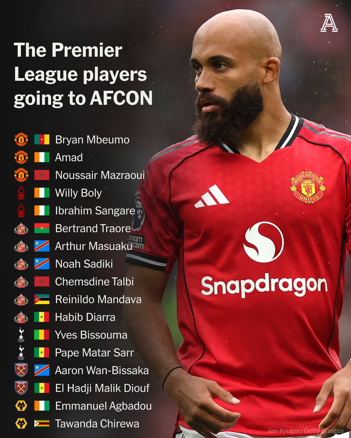 ذا أثليتيك | تنطلق كأس أمم إفريقيا 2025 يوم الأحد المقبل.. وبدءًا من هذا الموعد، ستفتقد أندية الدوري الإنجليزي الممتاز خدمات عدد من لاعبيها، الذين سيغيبون عن المنافسات خلال الأسابيع المقبلة