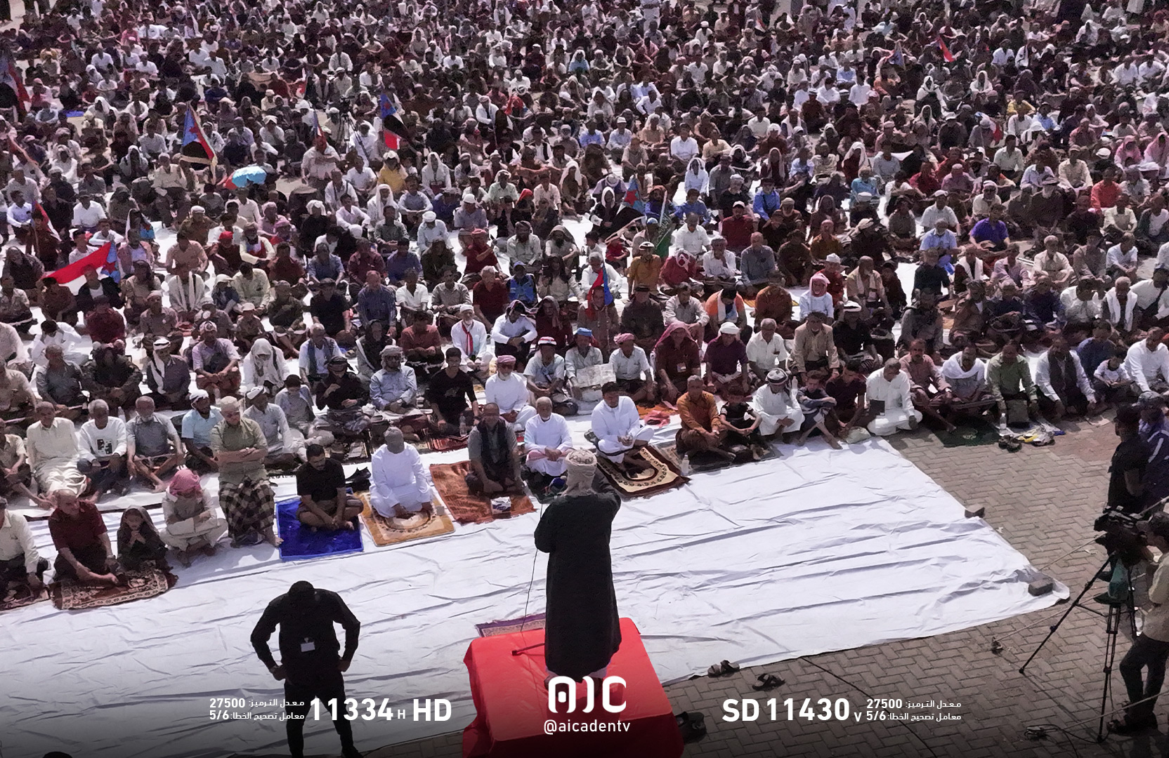 ترقبوا.. نقلاً حياً ومباشراً لشعائر خطبتي وصلاة الجمعة من ساحة الاعتصام بمديرية خور مكسر بالعاصمة عدن على شاشة قناة