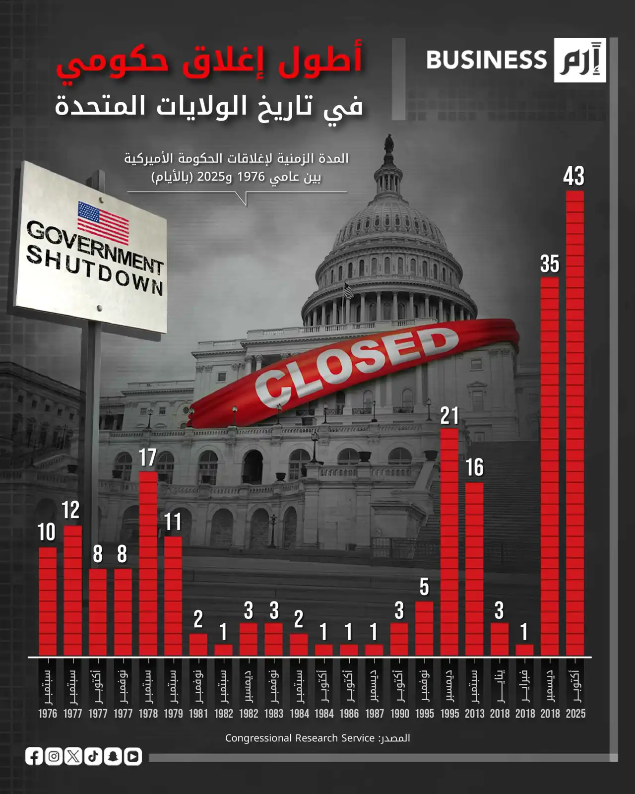 الأطول في تاريخ أميركا.. إغلاق 2025 يكسر الأرقام السابقة