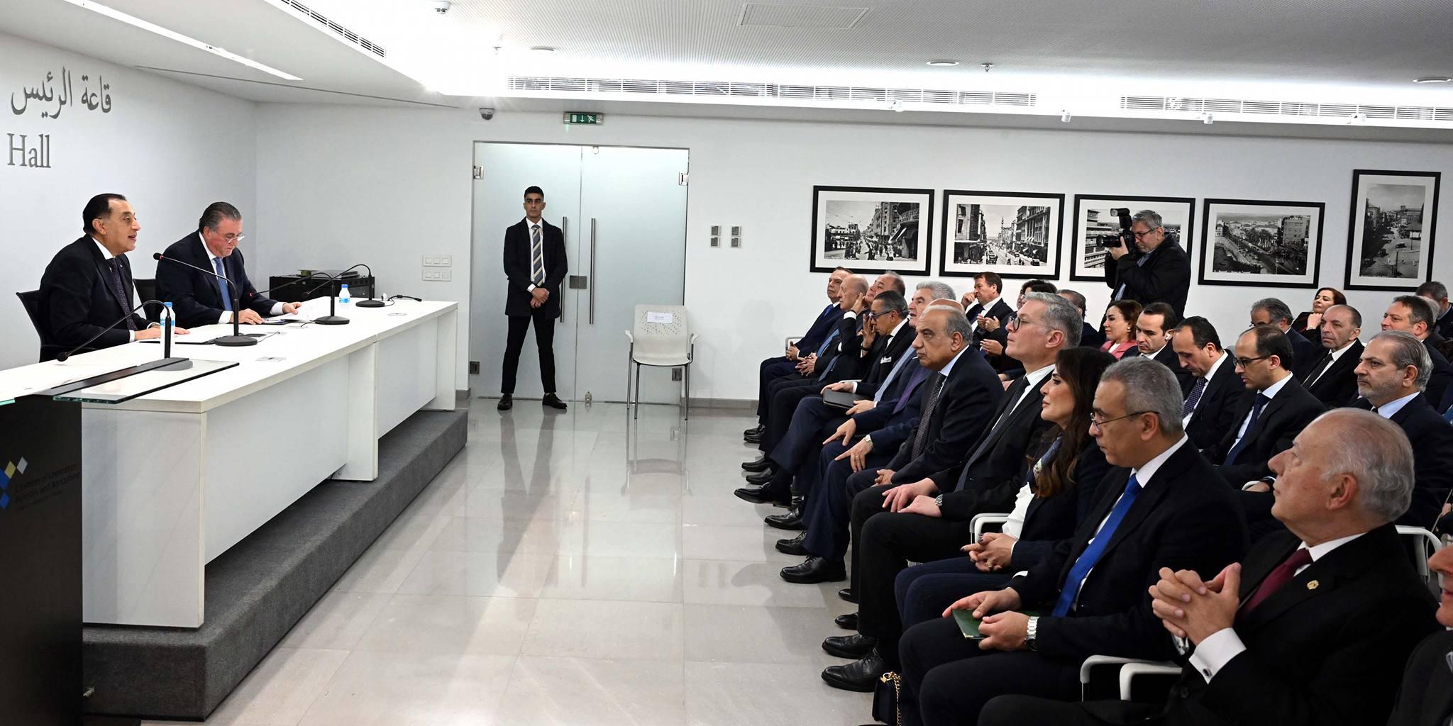 وتوجه رئيس الوزراء بالشكر إلى الهيئات الاقتصادية اللبنانية وغرفة التجارة والصناعة، وإلى محمد شقير، رئيس الهيئات الاقتصادية اللبنانية على حُسن الاستقبال والتنظيم، وعلى هذه المبادرة التي تعكس إيمان القطاع الخاص اللبناني بدوره المحوري في إعادة النهوض الاقتصادي، قائلا: "مما لا شك فيه، فإن وجودي في بيروت اليوم يحمل رسالةً واضحة مُفادها أن مِصْرَ تنظر إلى لبنان ليس فقط كشريك سياسي، بل كشريك اقتصادي محوري واستراتيجي، وإننا نُؤمن بأن العلاقات بين الدول تُبنى وتُصانُ عندما يكون للقطاع الخاص دور فاعل في صياغة مستقبلها".