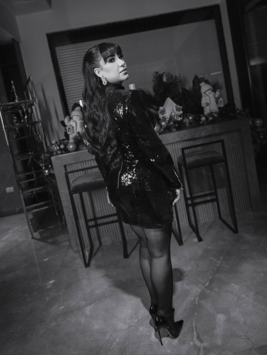 إطلالة المطربة بوسي بفستان أسود عبر إنستجرام