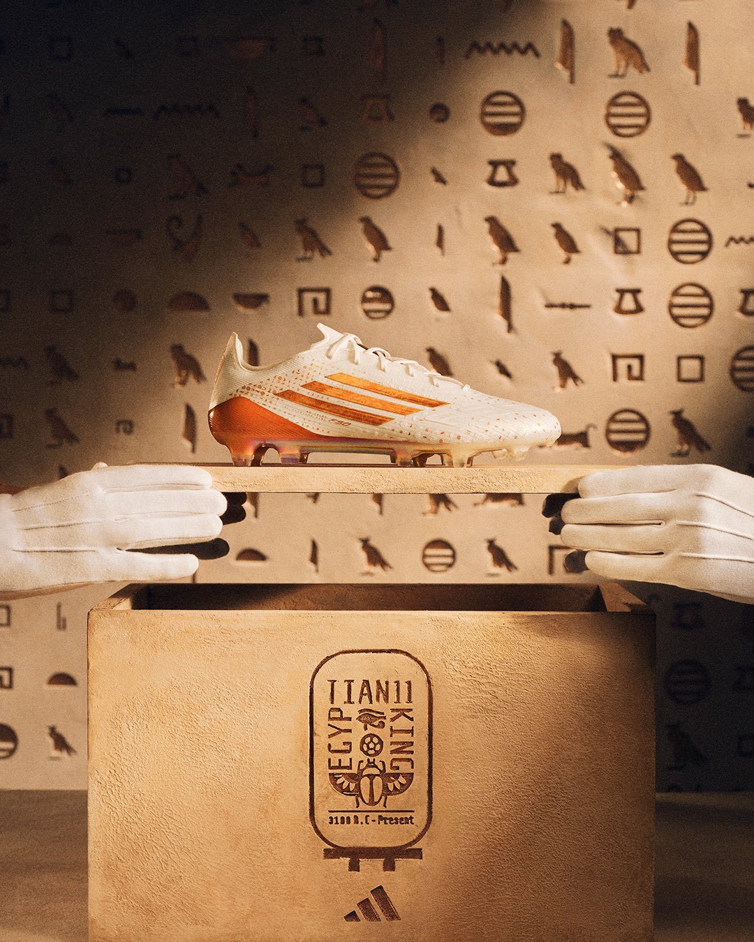 أديداس تطلق مجموعة جديدة مستوحاة من خط F50 لمحمد صلاح، مستلهمة من مصر القديمة، ليشارك بها في كأس الأمم الأفريقية وكأس العالم مع منتخب بلاده