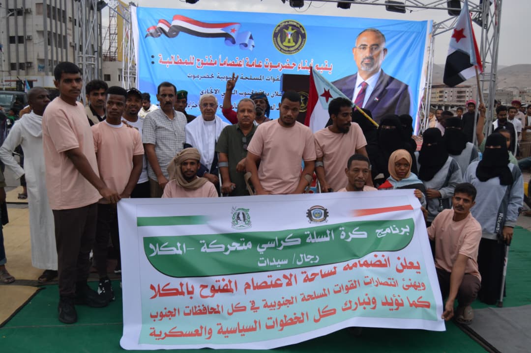 منتخب حضرموت لكرة السلة لـ "الكراسي المتحركة"، واتحادات وجمعيات وأندية الساحل تنضم إلى ساحة الاعتصام بالمكلا، مطالبين الرئيس الزُبيدي بإعلان دولة الجنوب العربي #استعادة_دوله_الجنوب