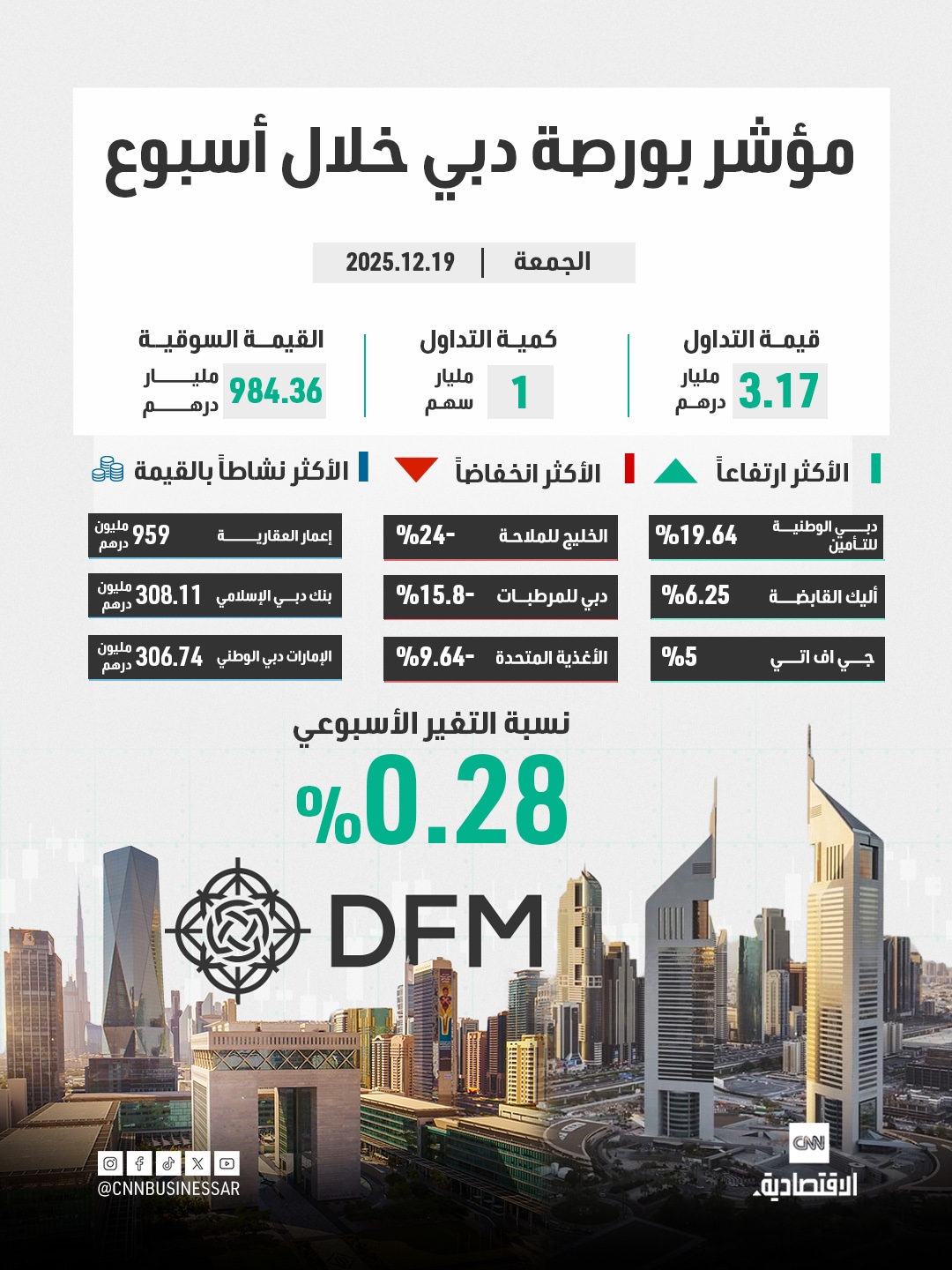 اطلعوا على مؤشرات بورصتي أبوظبي ودبي خلال أسبوع